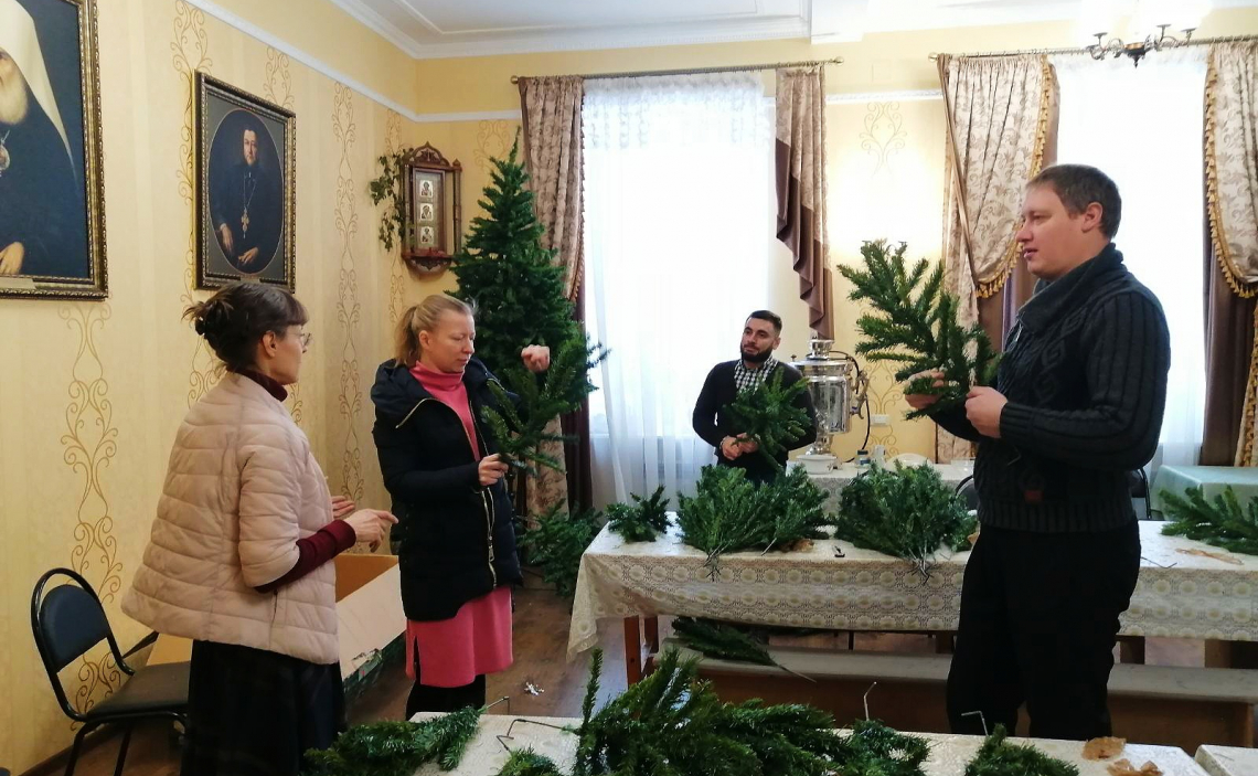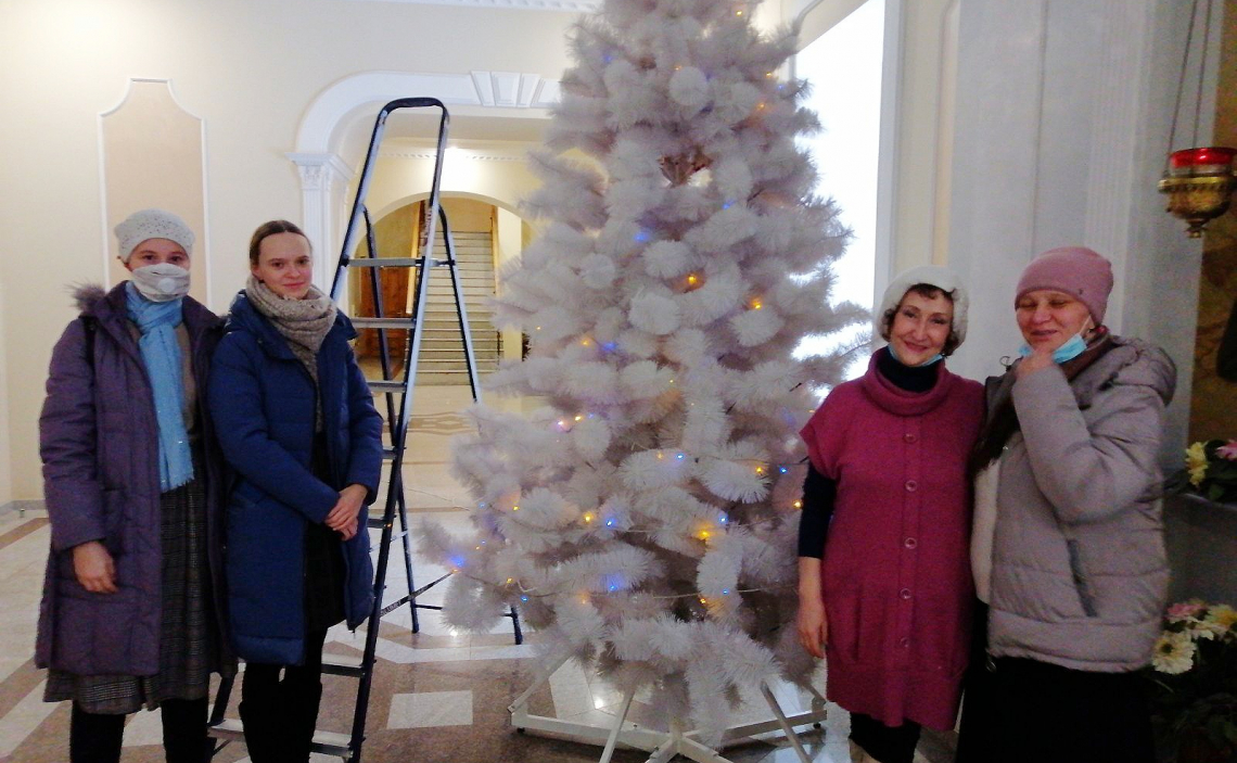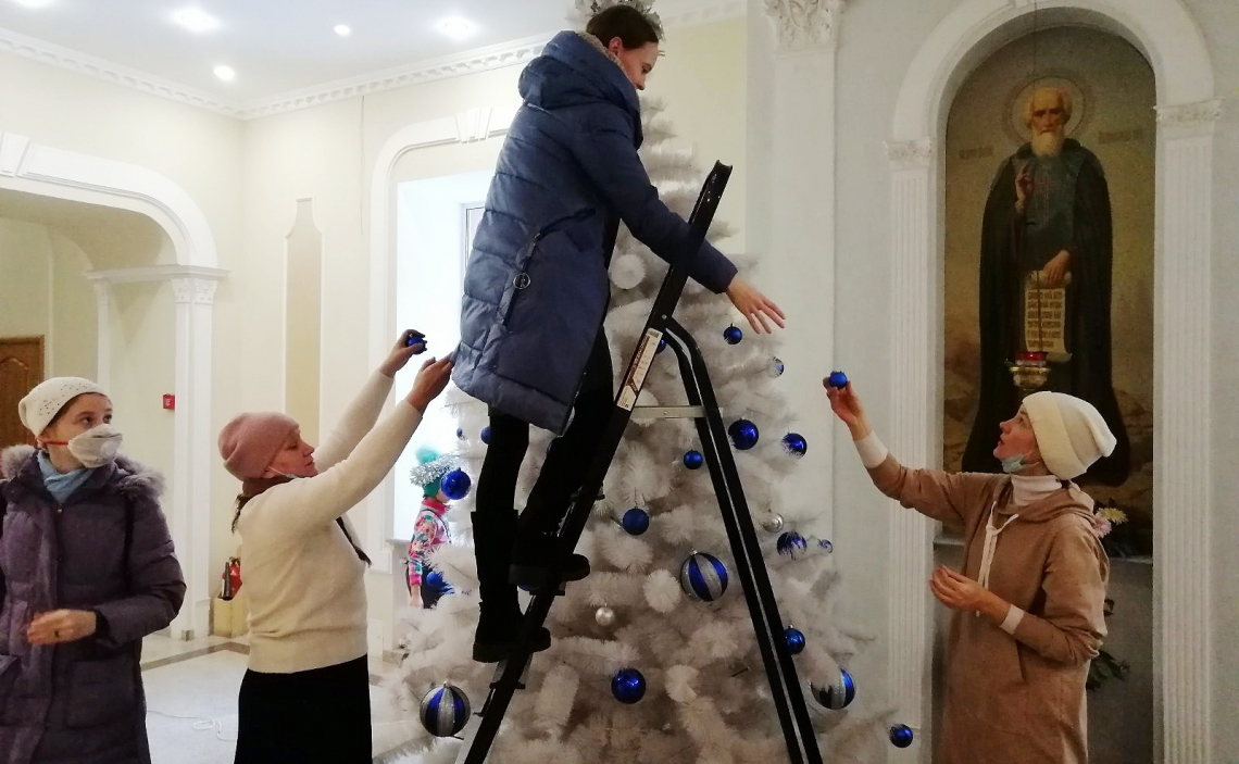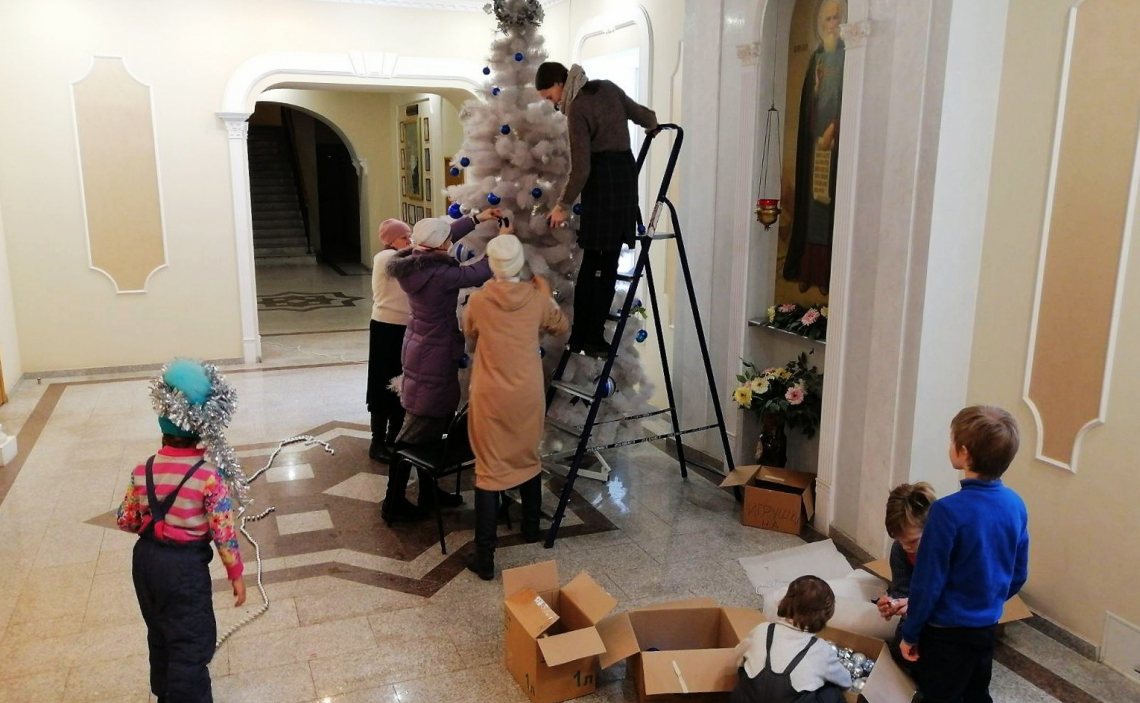 По окончании Божественной Литургии прихожане храма преподобного Сергия Радонежского украсили церковный дом к празднику Рождества Христова. Для украшения воскресной школы объединили усилия и взрослые, и дети.