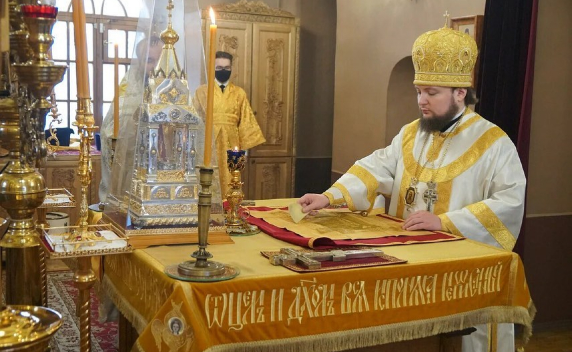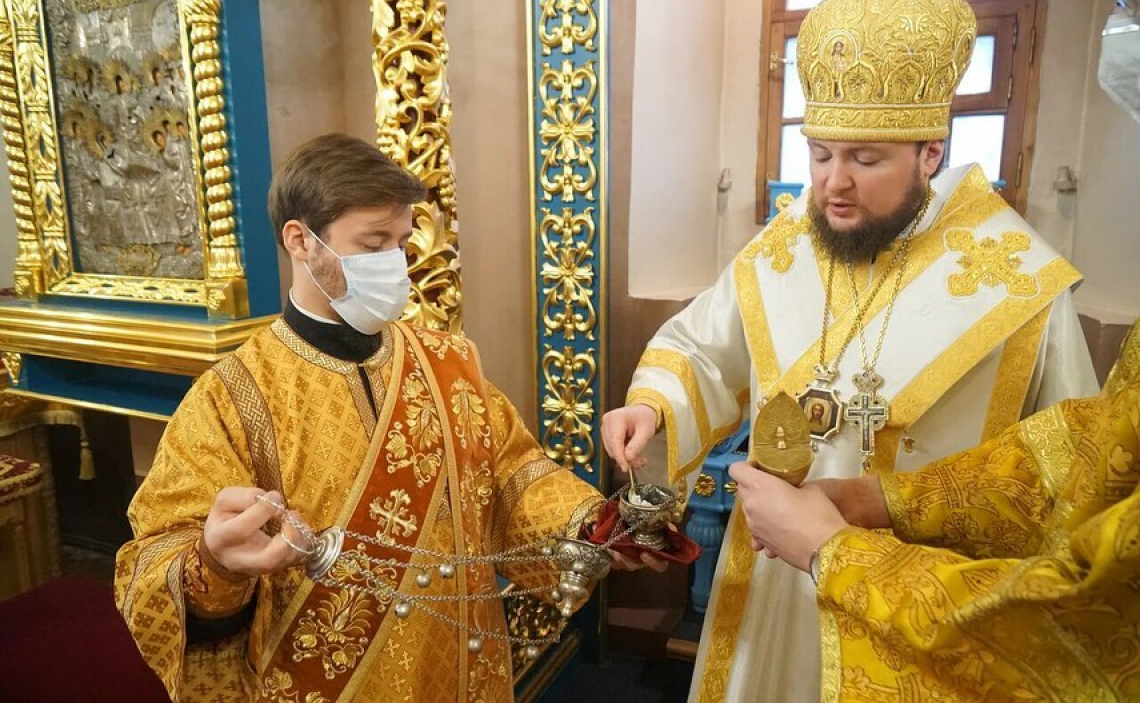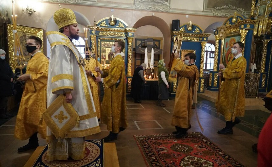 По сугубой ектении Владыка вознес молитву «во время губительного поветрия и смертоносныя заразы», а также молитву о Святой Церкви.