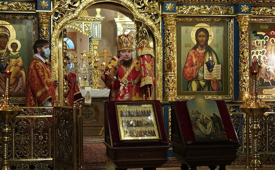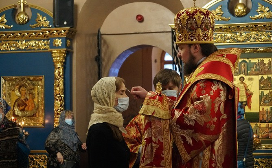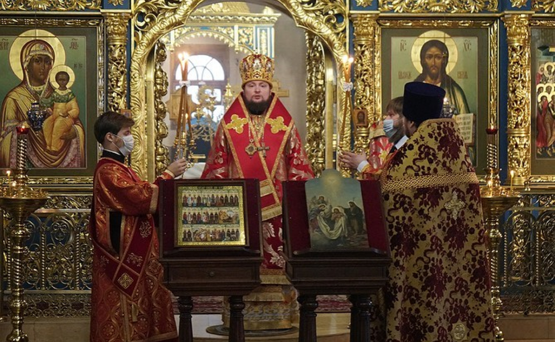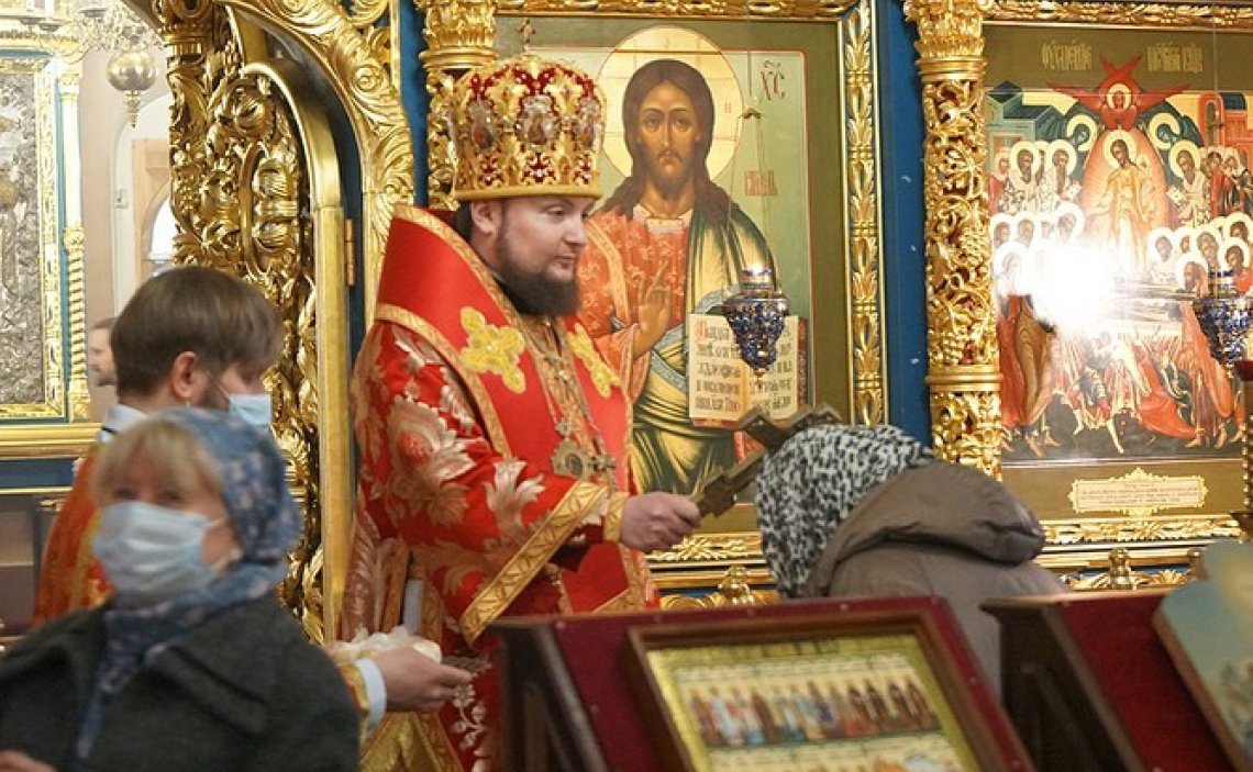 За Божественной Литургией по сугубой ектении Владыка вознес молитву «во время губительного поветрия и смертоносныя заразы», а также молитву о Святой Церкви.