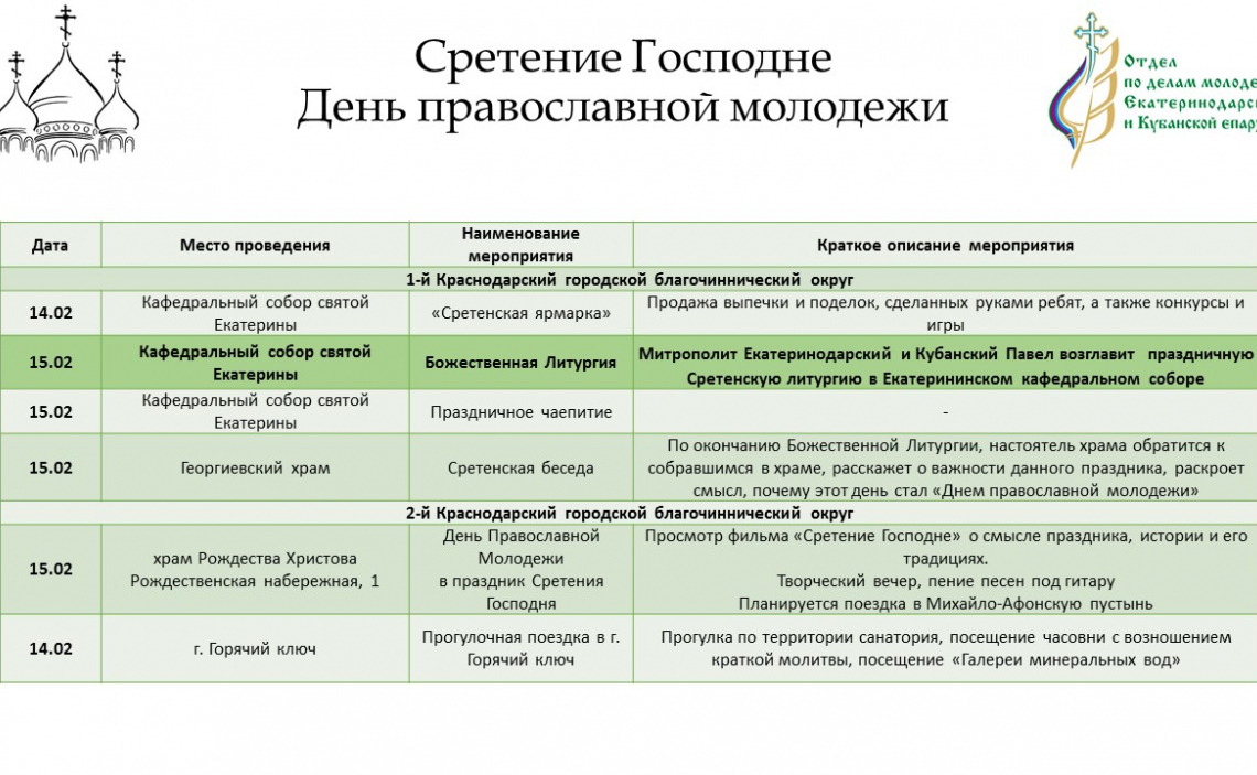 В Екатеринодарской и Кубанской епархии пройдут мероприятия посвящённые, «Международному дню православной молодежи».