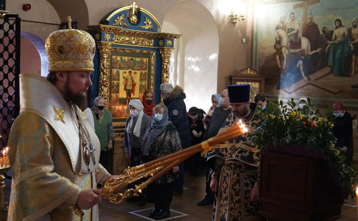 За Божественной Литургией по сугубой ектении Владыка вознес молитву «во время губительного поветрия и смертоносныя заразы», а также молитву о Святой Церкви.