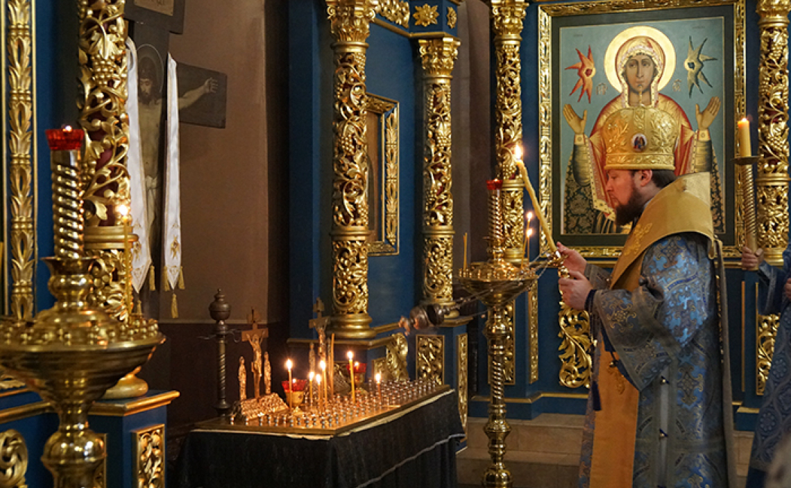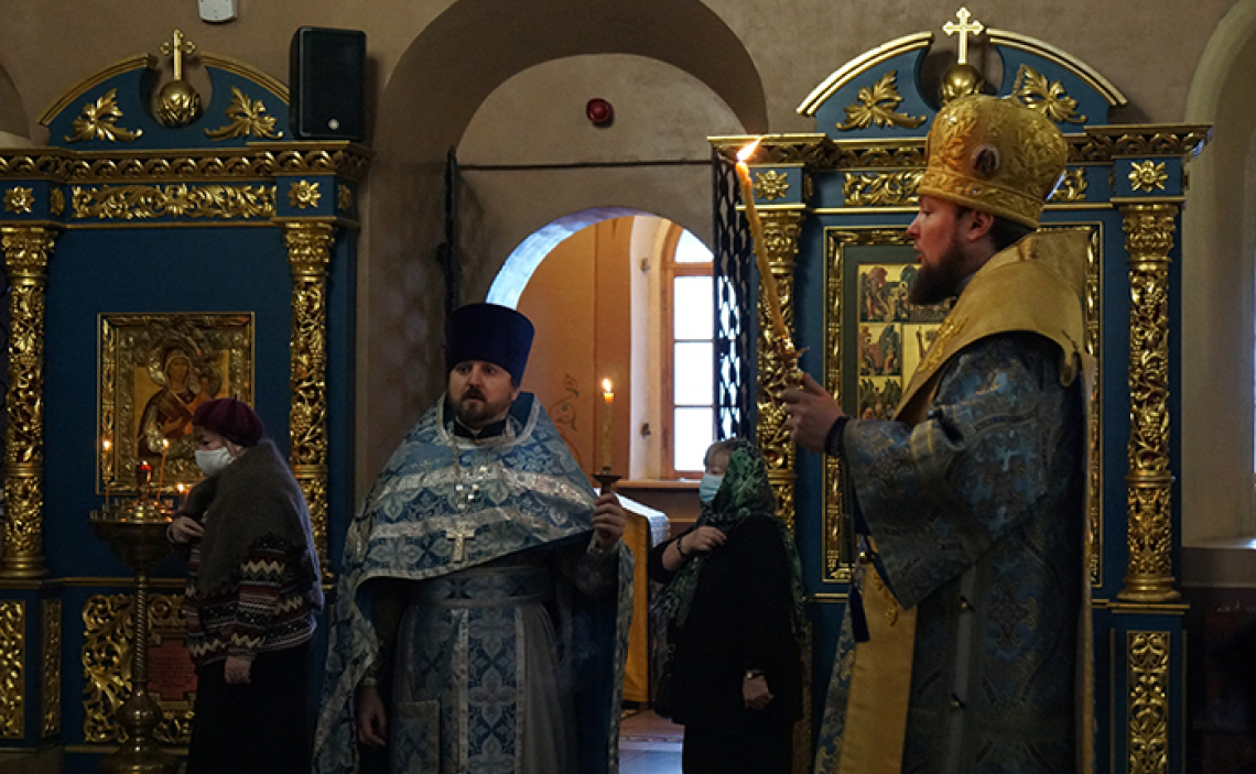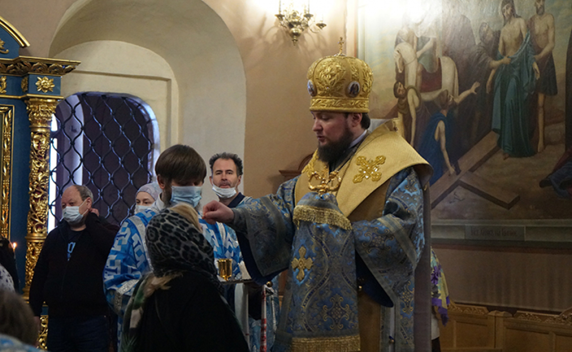 За Божественной Литургией по сугубой ектении Владыка вознес молитву «во время губительного поветрия и смертоносныя заразы», а также молитву о Святой Церкви.
