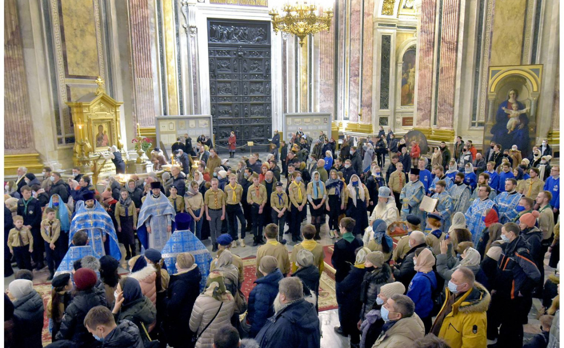 Среди молящихся были директор ГМП "Исаакиевский собор" Юрий Мудров, начальник городского отдела по связям с религиозными объединениями Владимир Иванов, председатель городского комитета по молодежной политике и взаимодействию с общественными организациями Богдан Заставный, а также члены Организации российских юных разведчиков (ОРЮР).