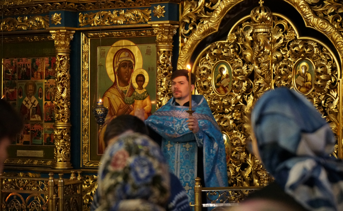 Встречу предварял молебен с акафистом перед Феодоровским образом Божией Матери в Свято-Успенском соборе подворья.