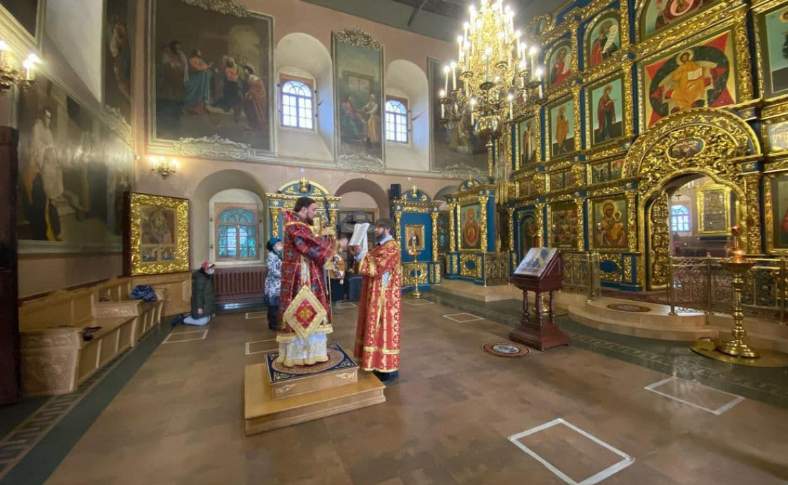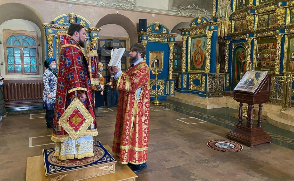 За Божественной Литургией по сугубой ектении Владыка вознес молитву «во время губительного поветрия и смертоносныя заразы», а также молитву о Святой Церкви.
