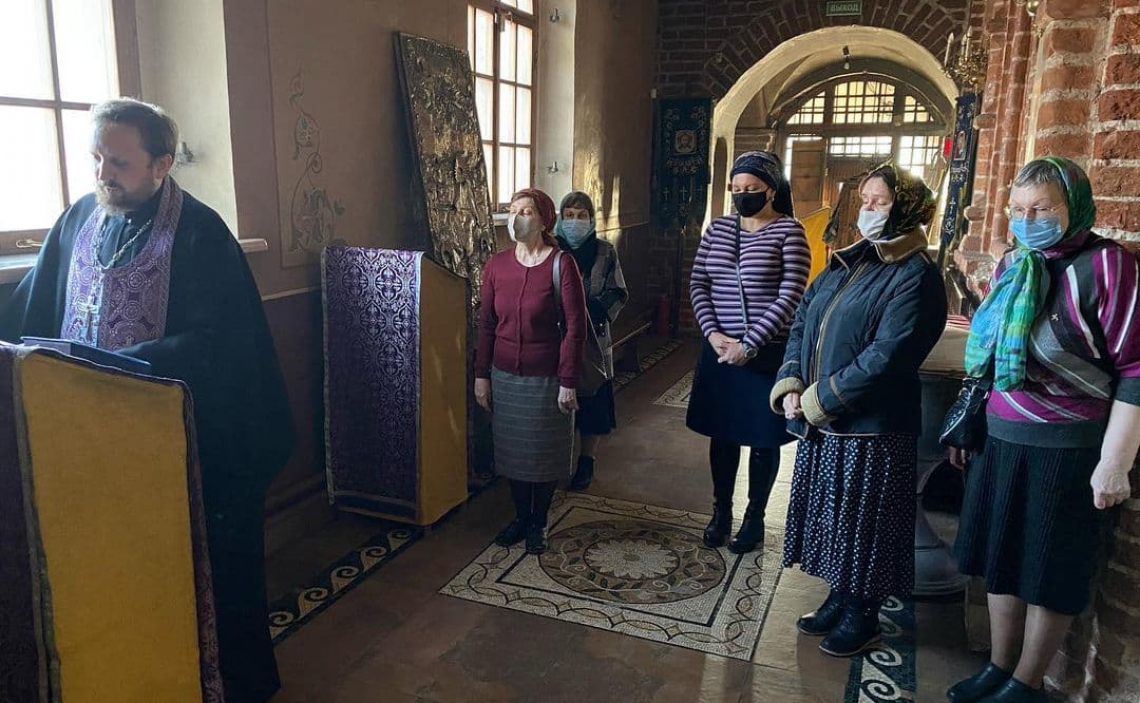 10 апреля, в субботу 4-й седмицы, Крестопоклонной, Епископ Истринский Серафим совершил совершил всенощное бдение в Свято-Успенском соборе Крутицкого подворья