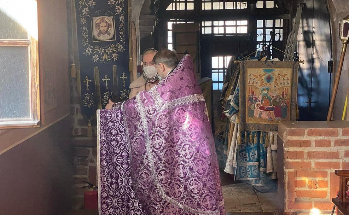По сугубой ектении Владыка вознес молитву «во время губительного поветрия и смертоносныя заразы», а также молитву о Святой Церкви.