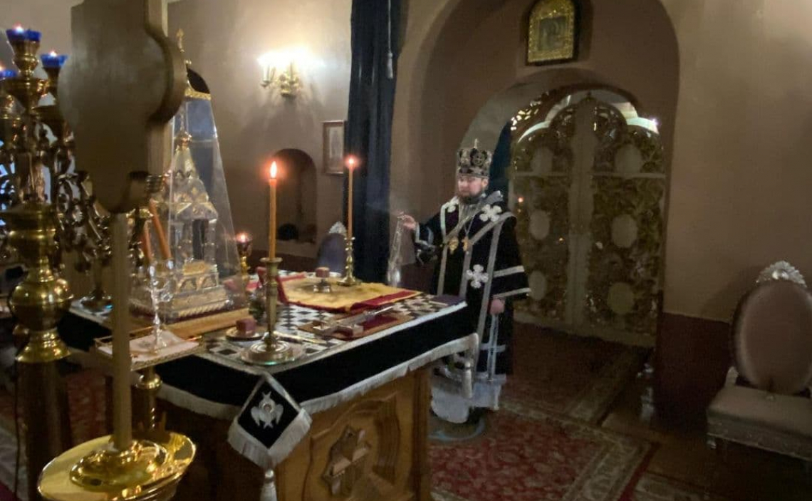 За Литургией по сугубой ектении Владыка вознес молитву «во время губительного поветрия и смертоносныя заразы», а также молитву о Святой Церкви.