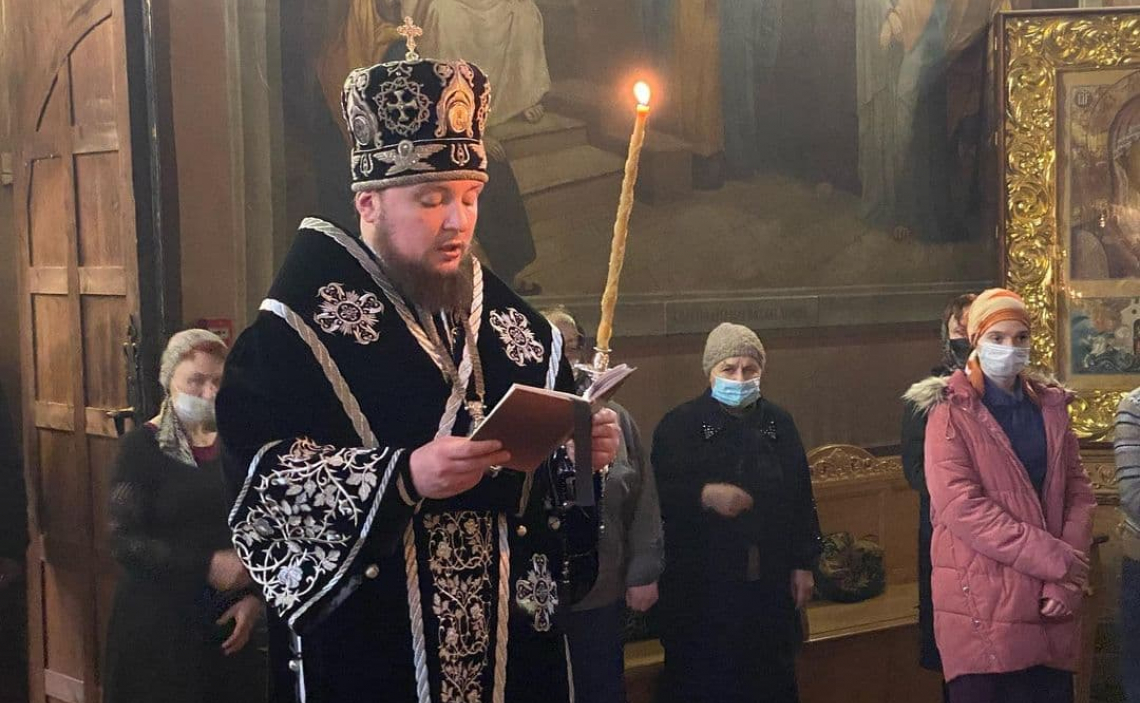 Затем Его Преосвященство с сослужащими священнослужителями совершил малое повечерие, на котором был прочитан канон «О распятии Господа и на плач Пресвятой Богородицы».
