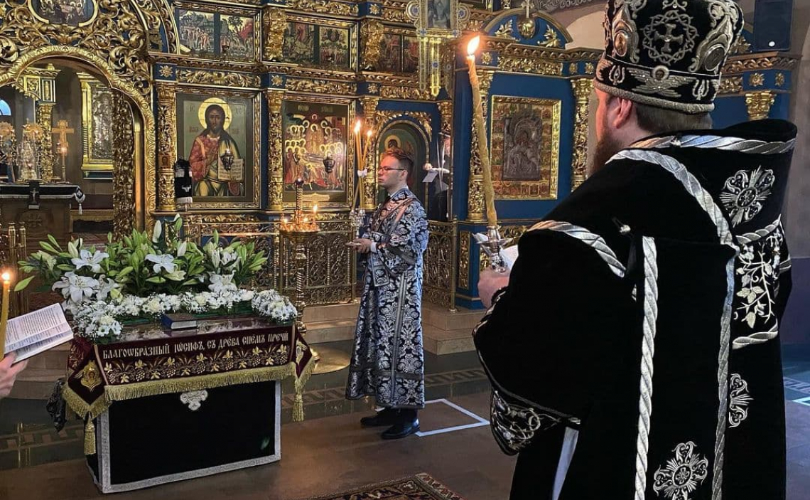 30 апреля, в Великий Пяток, день, посвященный воспоминанию Святых спасительных Страстей Господа нашего Иисуса Христа, Епископ Истринский Серафим совершил вечерню с выносом святой Плащаницы в Свято-Успенском соборе Крутицкого подворья.
