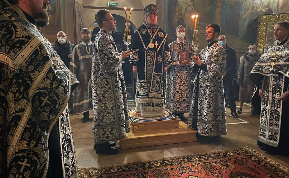 Вечером 30 апреля, в канун Великой субботы, Епископ Истринский Серафим в Свято-Успенском соборе Крутицкого подворья совершил утреню с чином погребения Господа нашего Иисуса Христа.