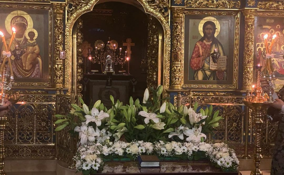 После пения тропарей на «Бог Господь» Владыка Серафим и сослужащее ему духовенство прочитали перед Плащаницей Спасителя Непорочны.
