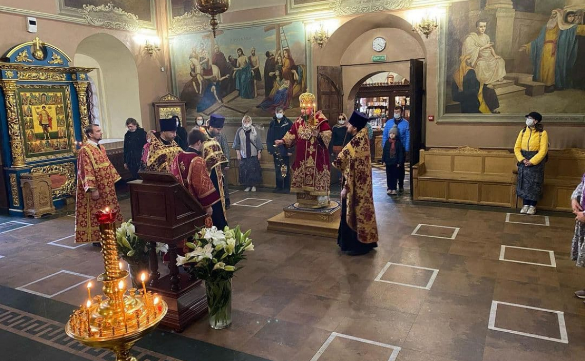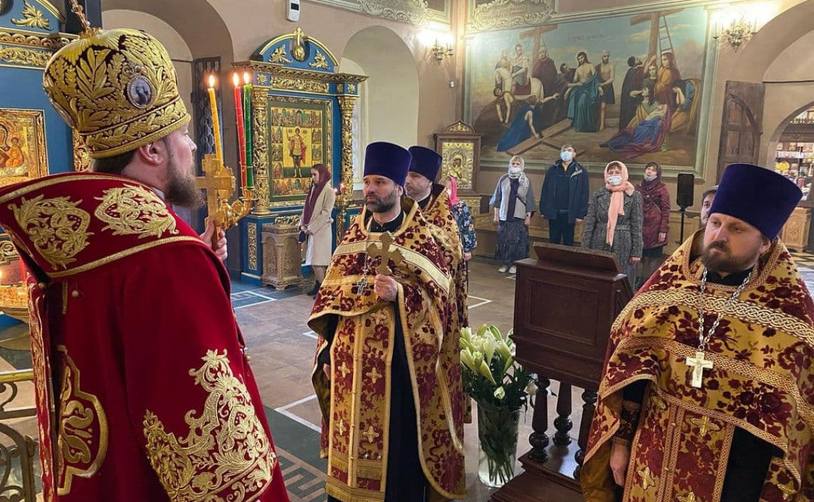 В день праздника Светлого Христвова Воскресения Епископ Истринский Серафим совершил пасхальную Великую вечерню в Свято-Успенском соборе Крутицкого подворья
