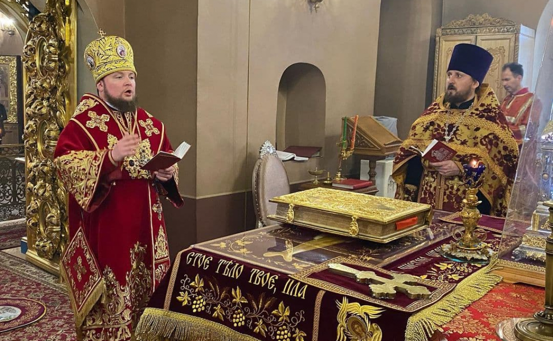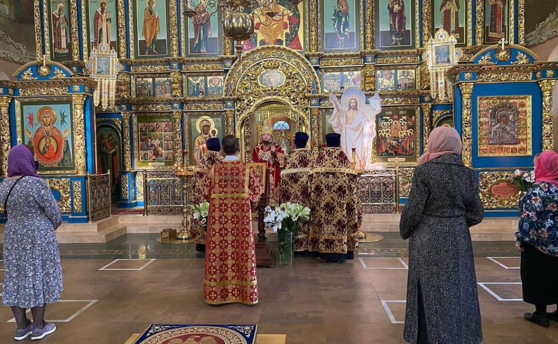 После входа с Евангелием и великого прокимна «Кто Бог велий, яко Бог наш? Ты еси Бог, творяй чудеса» Епископ Серафим прочитал в Царских вратах Евангельское зачало, повествующее о явлении Спасителя апостолам в день Воскресения.