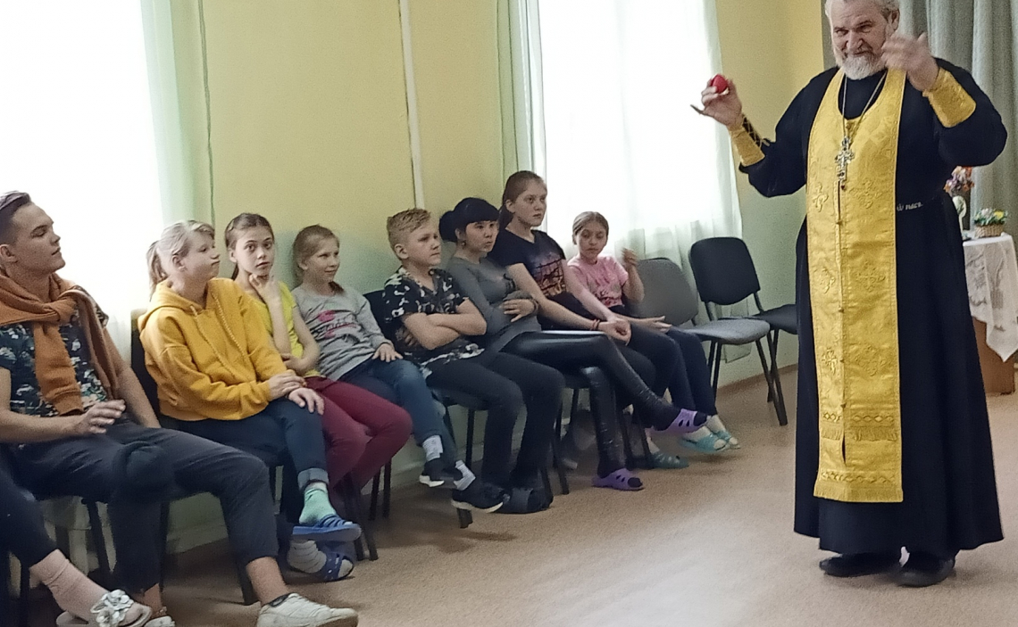 Священник храма Архистратига Михаила Новокузнецкой епархии поздравил с Пасхой воспитанников детского дома
