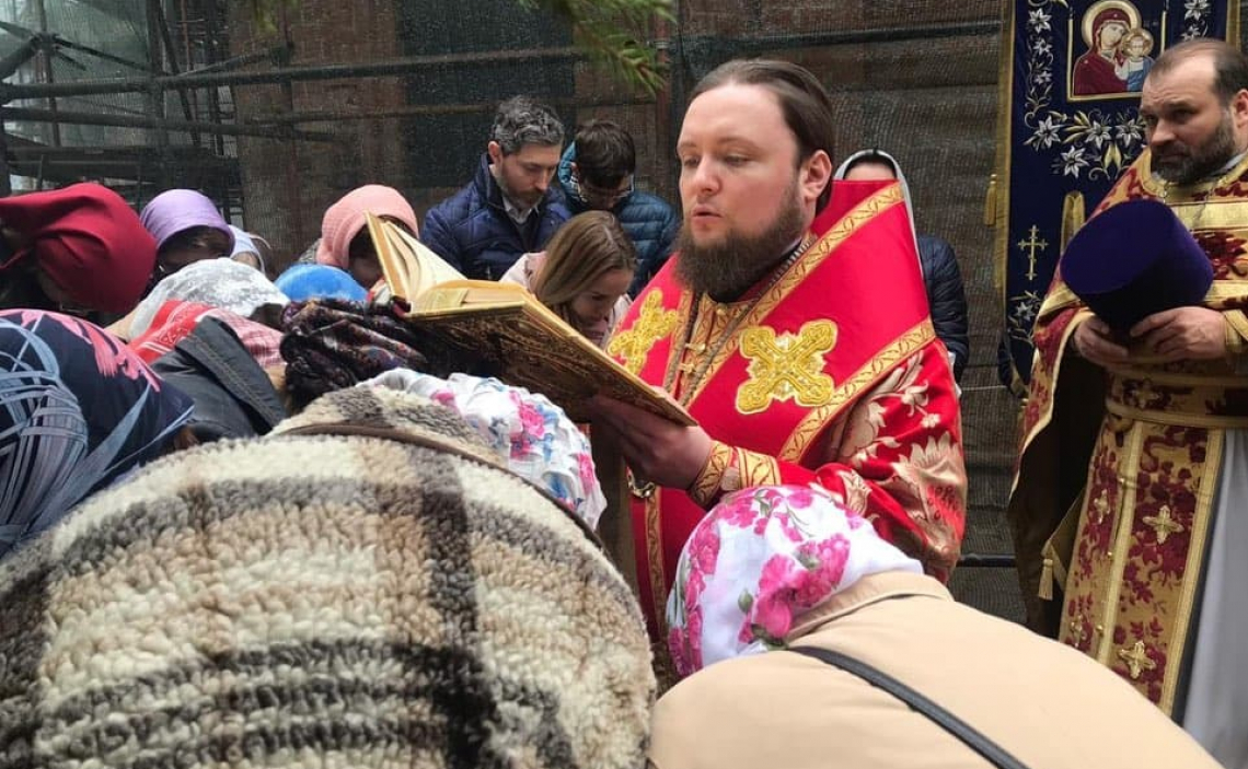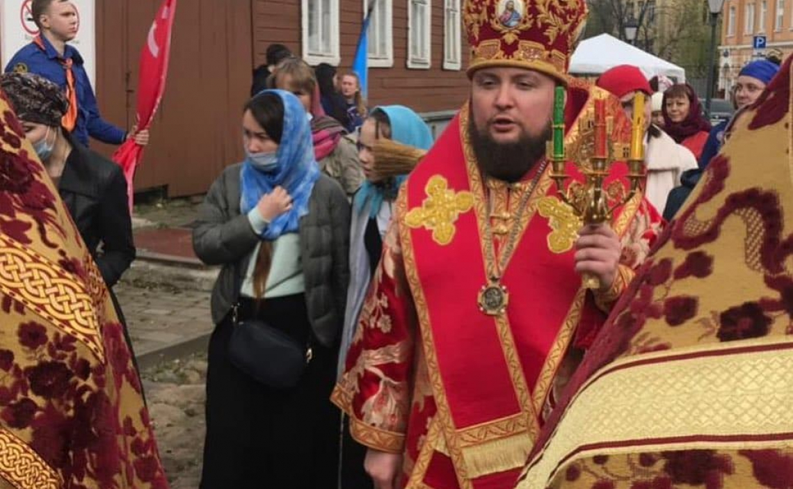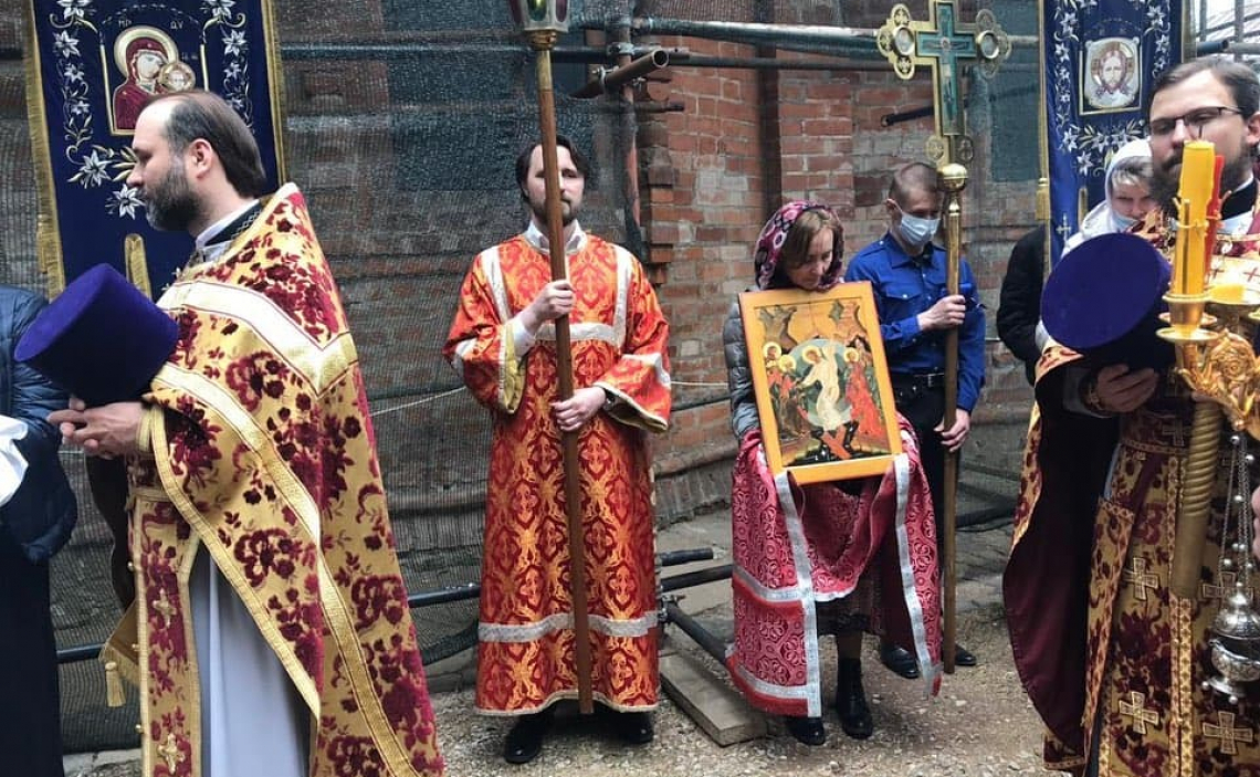 По завершении богослужения был совершён Крестный ход вокруг Свято-Успенского собора, после чего Его Преосвященство обратился к верующим со словами проповеди.