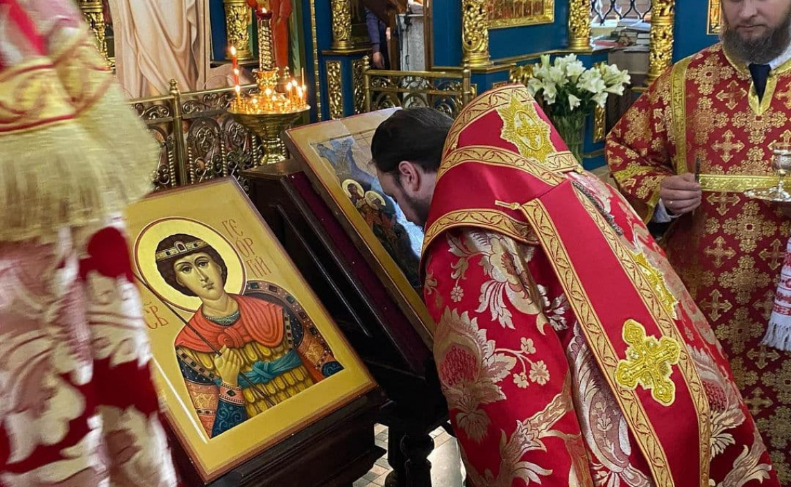 При выходе из храма Владыка поблагодарил духовенство, хор и прихожан за совместное участие в Евхаристии, поздравил с Светлым Четвергом и днем памяти Св. Великомученика и Победоносца Георгия, небесного покровителя града Москвы, и преподал всем архипастырское благословение.