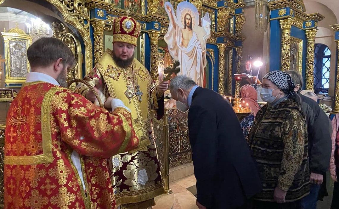 После Его Преосвященство приветствовал участников Богослужения пасхальным возгласом «Христос воскресе!» и обратился к присутствующим со словами проповеди.