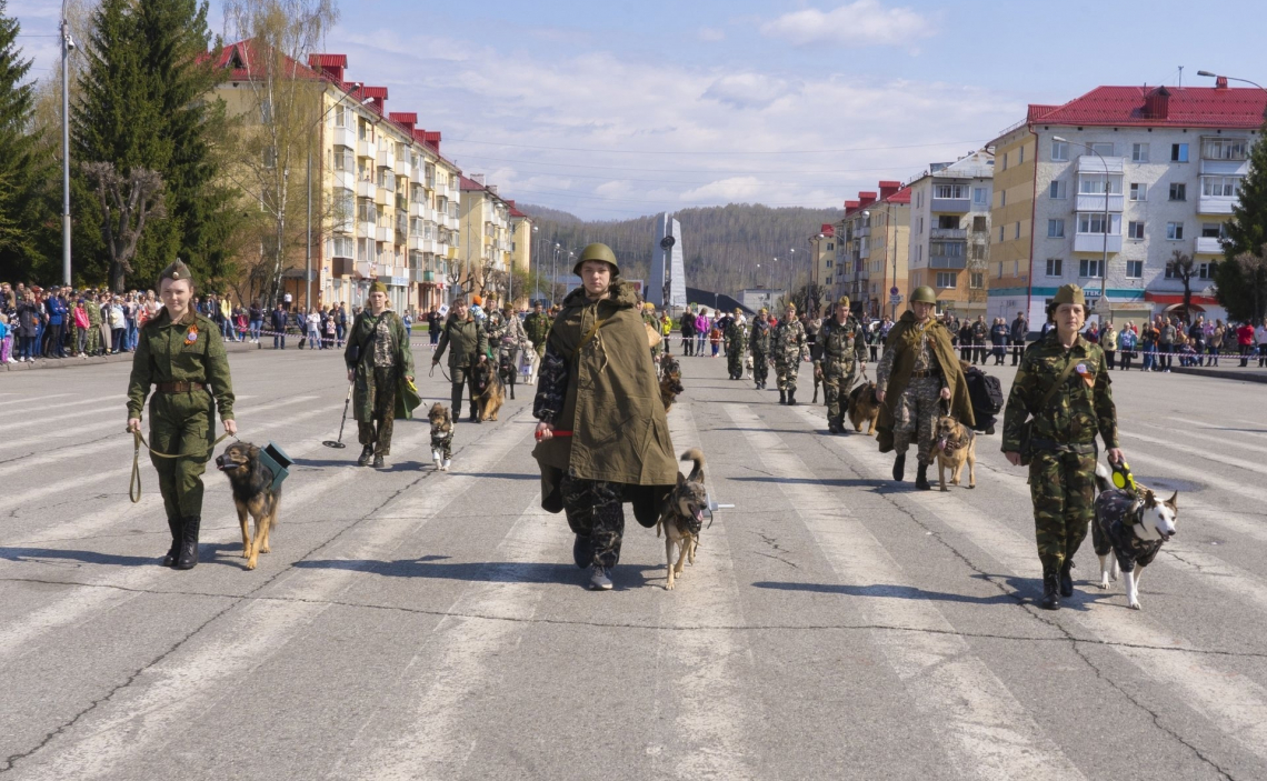 По окончании богослужения волонтеры раздавали Георгиевские ленточки, а также приняли участие в акции «Лохматые герои». Эта акция проводися в Кузбассе впервые, но возможно, станет ежегодной. Около 30 человек со своими питомцами шествовали в торжественном марше, чтобы напомнить о роли собачьих отрядов в годы Великой Отечественной войны. Собаки выполняли функции саперов, санитаров, подрывников, связистов, разведчиков. Междуреченцам рассказали о роли собак во время войны и продемонстрировали общий курс дрессировки.