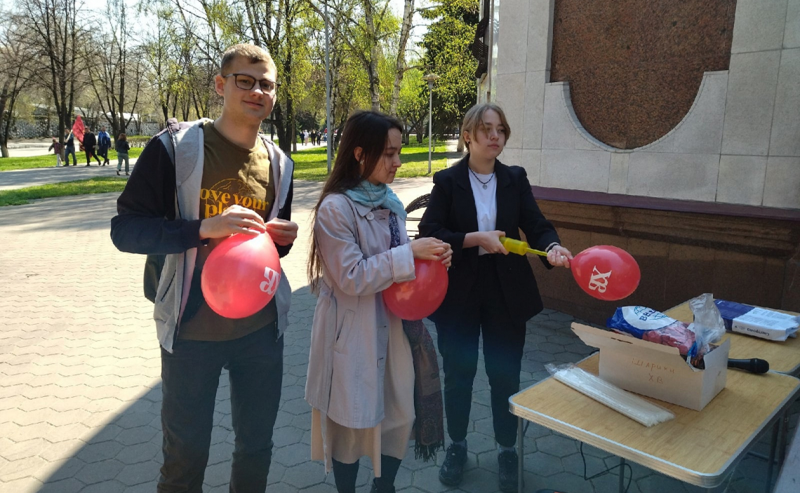 После торжественных мероприятий ребята в рамках акции «Дни единых действий» отправились на улицы города поздравлять прохожих, вручая им воздушные шары и буклеты, посвященный празднику.