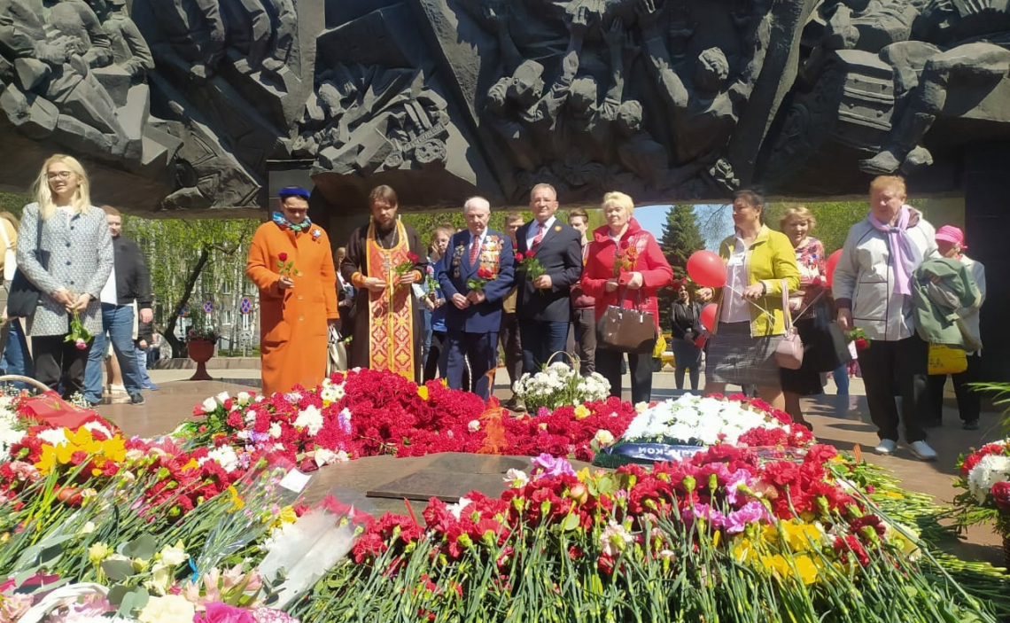 Вместе с руководителем отделам по делам молодежи Новокузнецкой епархии протоиереем Андреем Рузановым участники мероприятия возложили цветы к вечному огню.