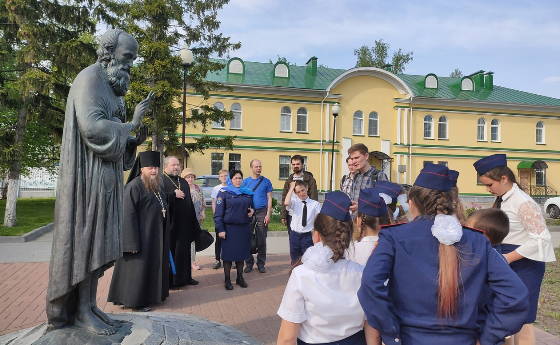 Председатель отдела по работе с молодежью Симбирской епархии Сергей Николаев провел для школьников экскурсию по Всехсвятскому храму и Спасо-Вознесенскому собору и рассказал о находящихся там иконах и святынях.