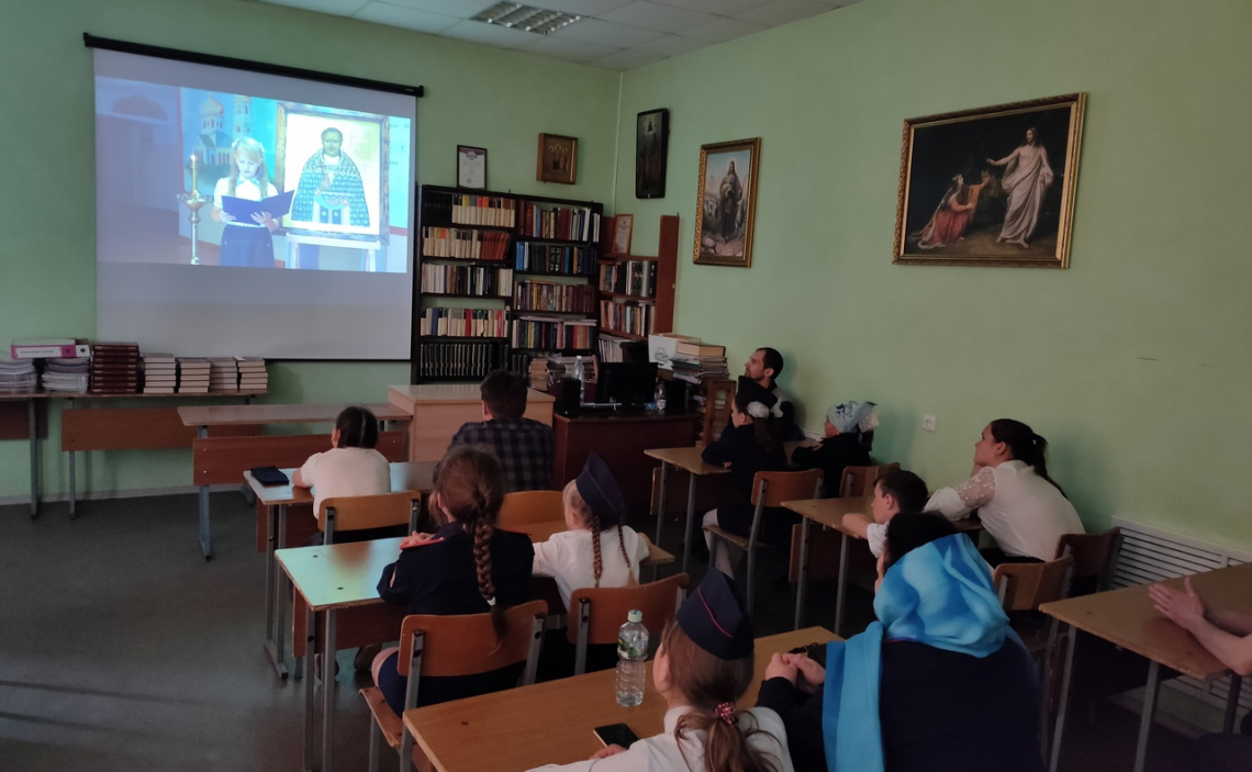 Затем в кабинете теологии прошел просмотр фильма "Священномученик Александр Гневушев, Бряндинский", который был снят благодаря кропотливому труду сотрудников "Симбирского центра православной культуры".