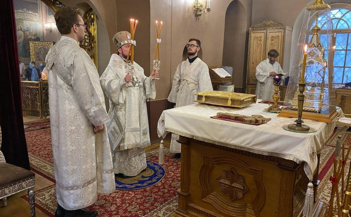 За вечерним богослужением была совершена Лития с освящением хлебов, пшеницы, вина и елея. На утрени Владыка Серафим возглавил полиелей.