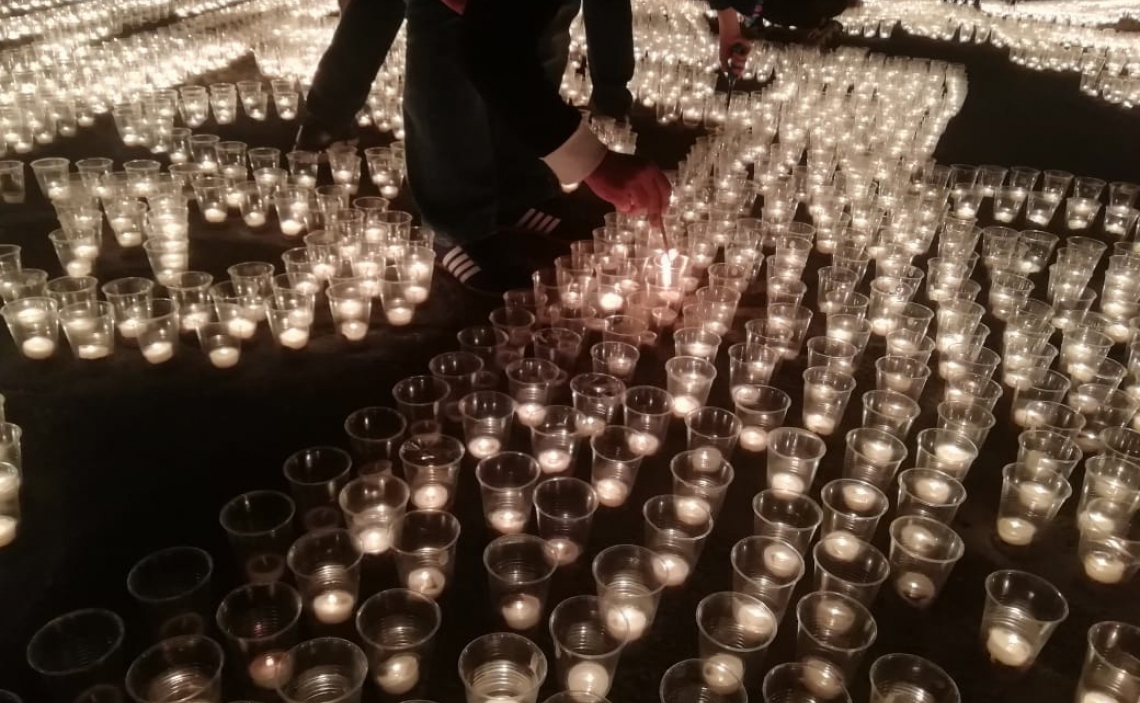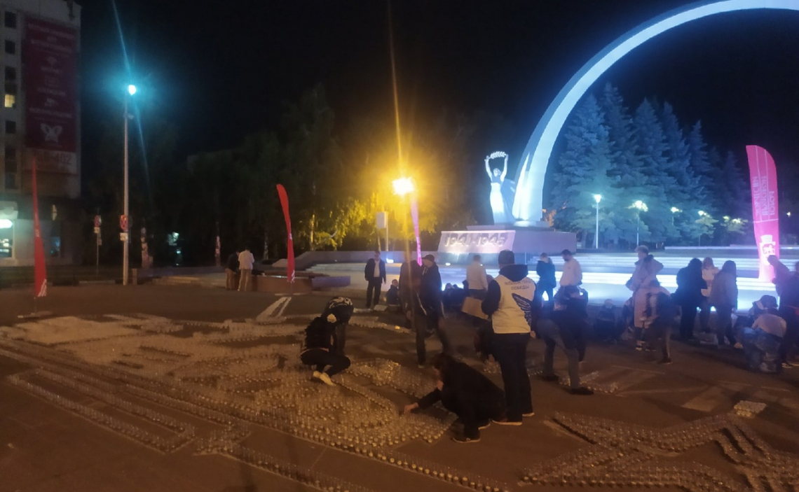 Более 60 волонтеров создавали картину в течение 12 часов, на реализацию проекта потребовалось 10 тысяч свечей. Всю ночь шла подготовка, и в 4 часа утра зажегся огненный танк.