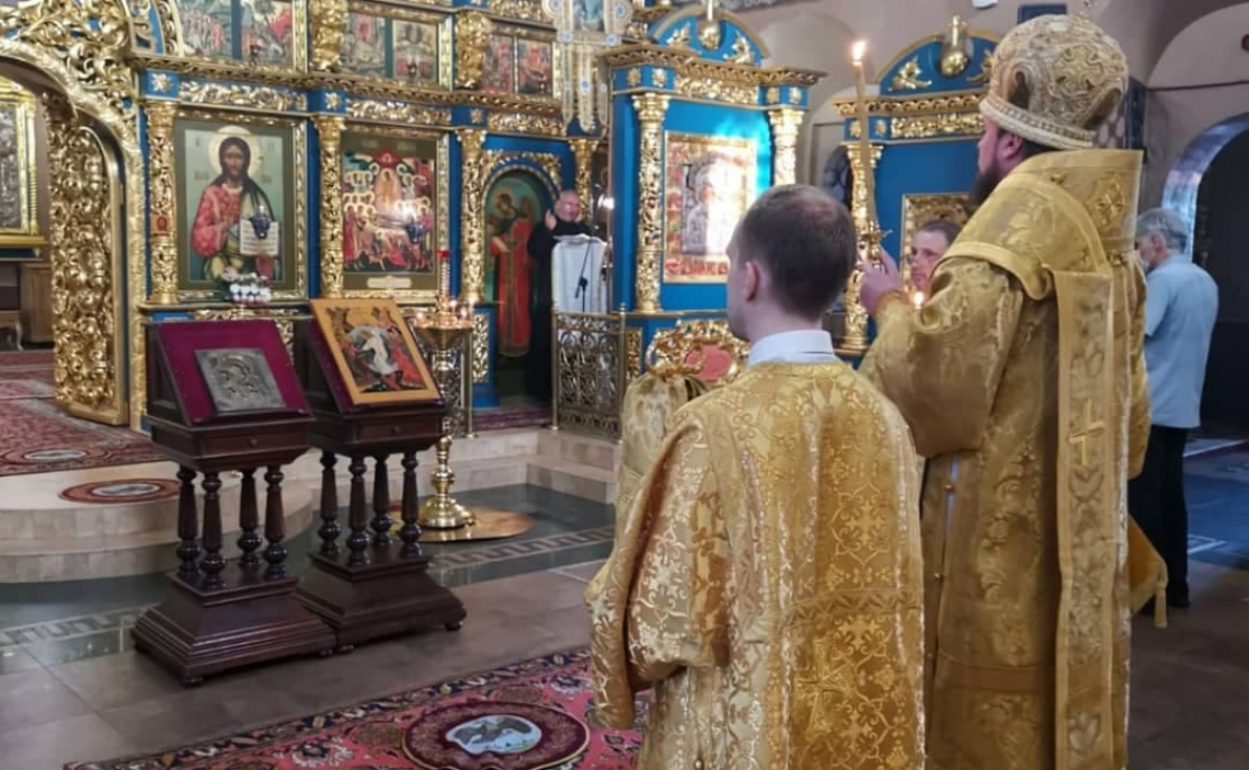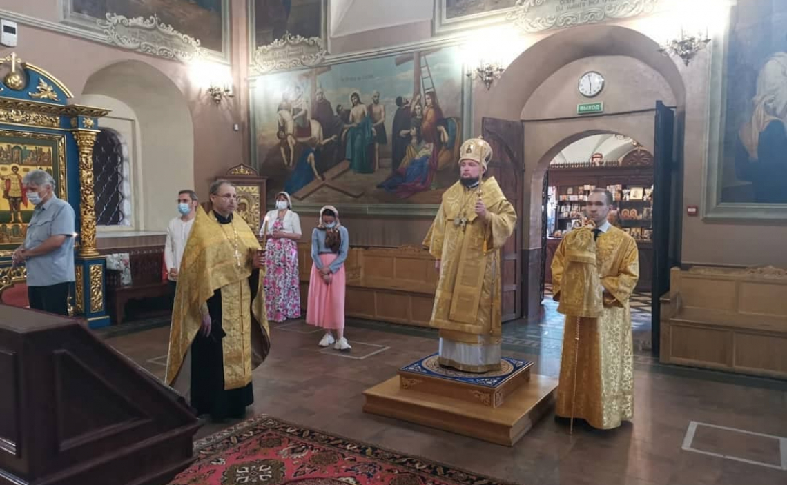 Его Преосвященству сослужило местное духовенство, песнопения исполнял мужской хор храма.