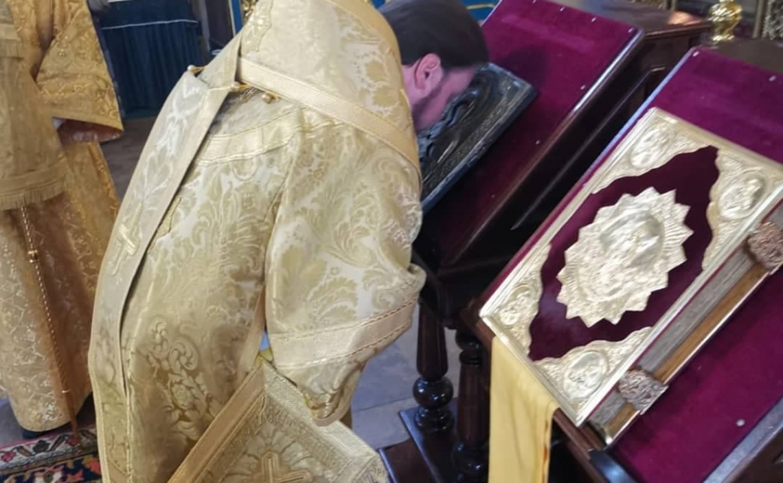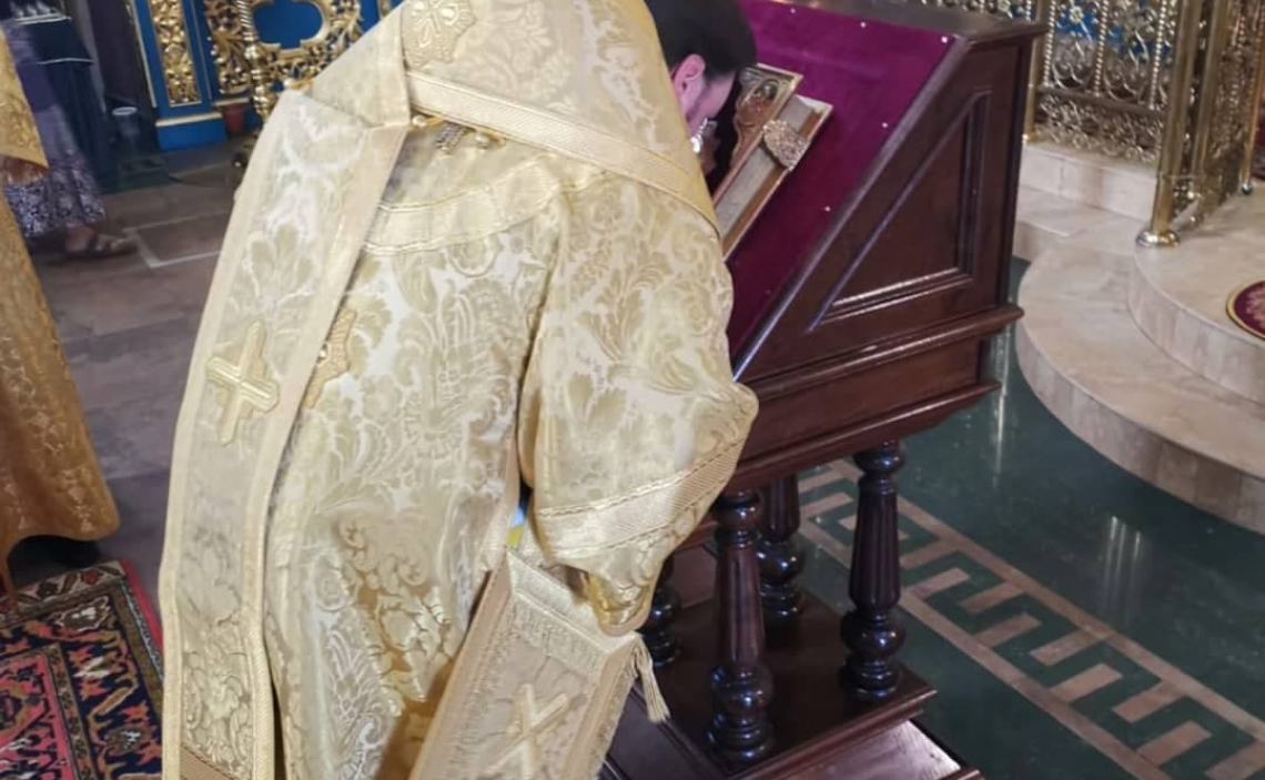 По окончании первого часа Епископ Серафим обратился к прихожанам с проповедью, а также поздравил участников Богослужения с воскресным днем и праздником в честь иконы Божией Матери, именуемой «Троеручица»,