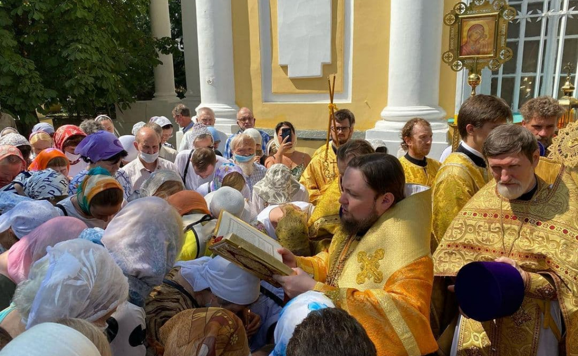После Литургии Преосвященнейший Серафим возглавил крестный ход вокруг храма с иконой святителя Филиппа, а после в сопровождении сослужащего духовенства совершил славление празднику.