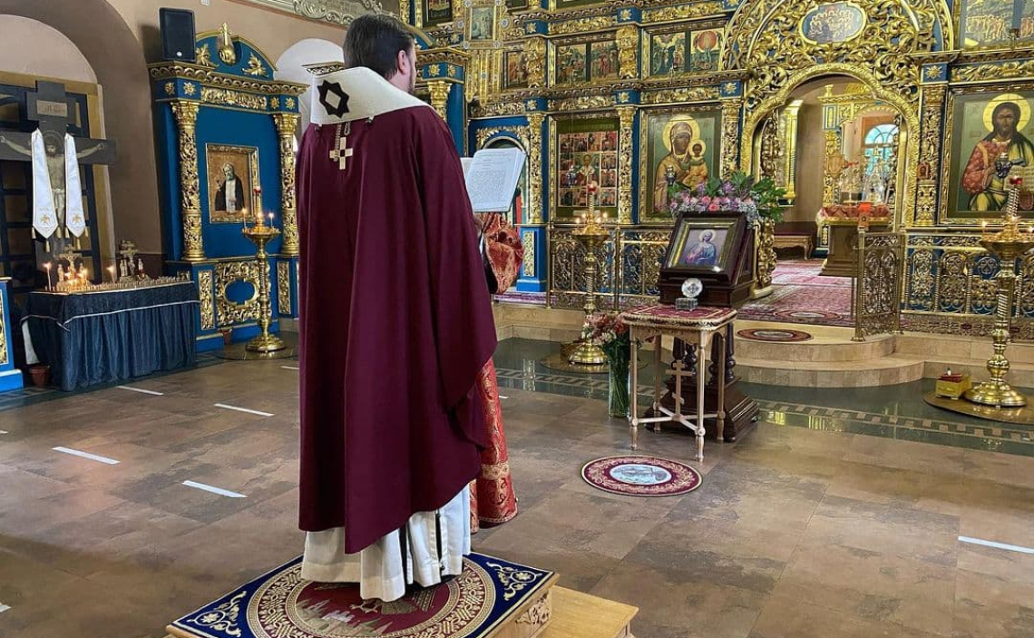 За Литургией по сугубой ектении Владыка вознес молитву «во время губительного поветрия и смертоносныя заразы», а также молитву о Святой Церкви.