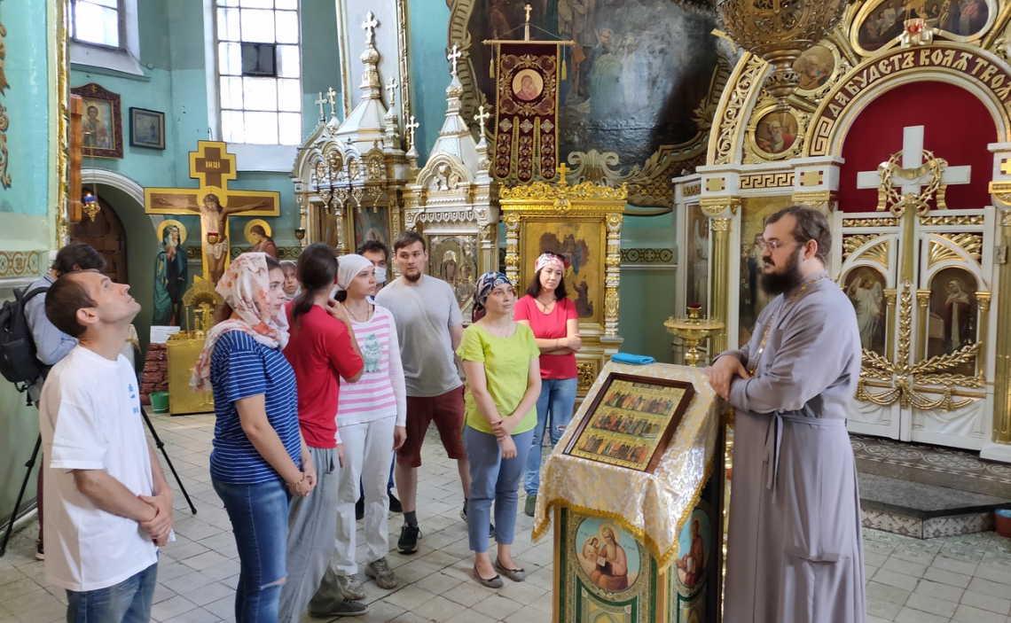 Перед началом трудовой акции настоятель Воскресенского храма иерей Антоний Закурдаев и краевед Ольга Николаевна Новосад рассказали православной молодежи об истории некрополя и храма.
