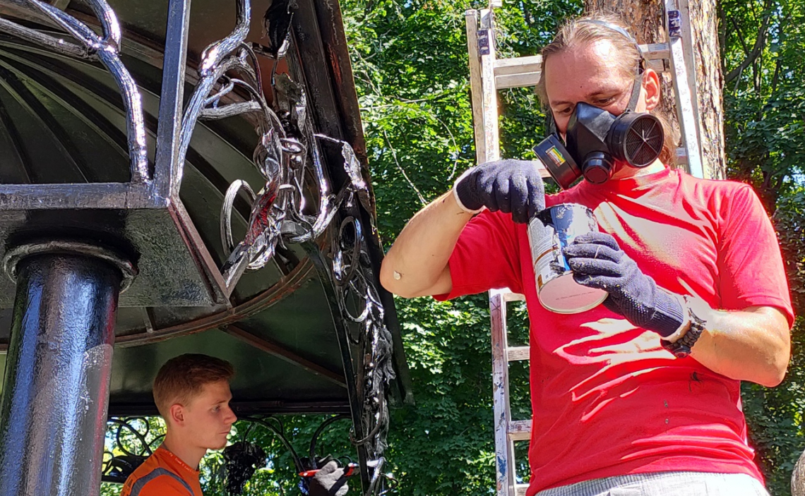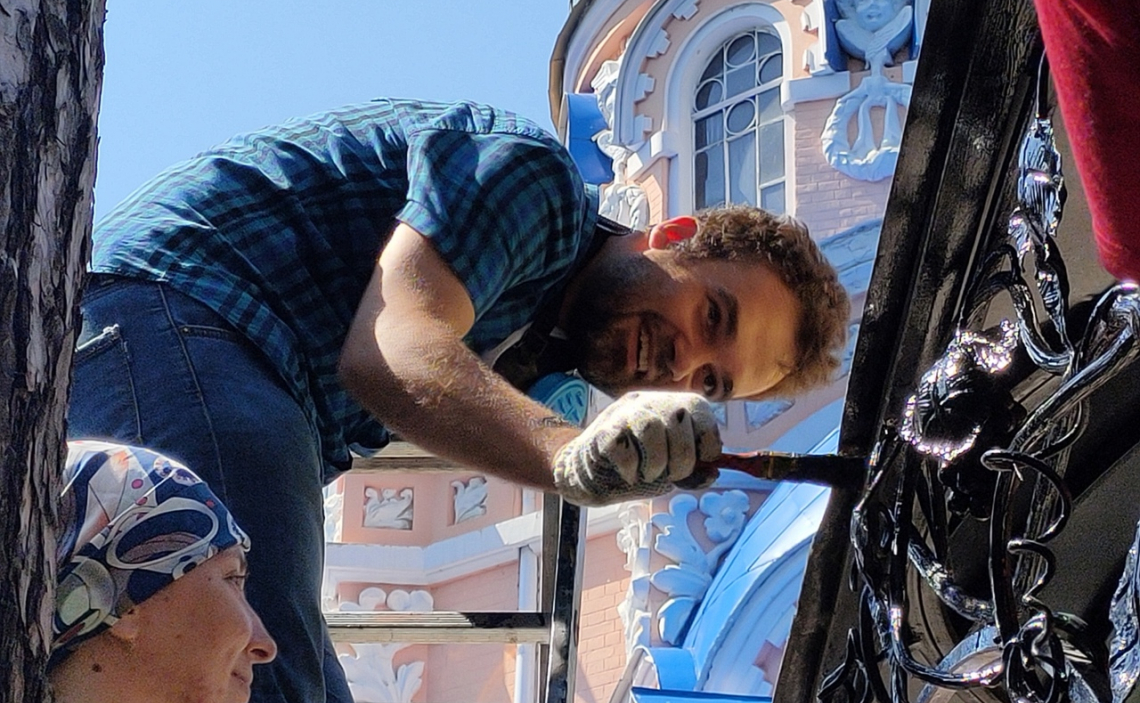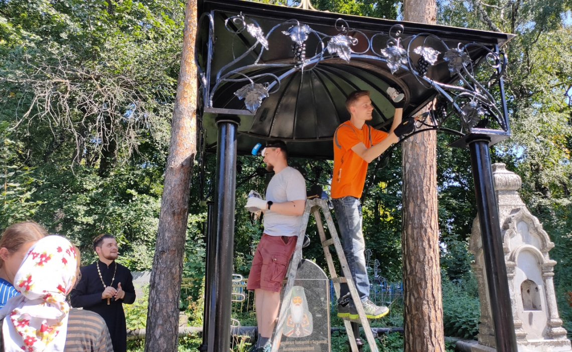 Затем православные добровольцы приступили к покраске могилы первого Симбирского архиепископа Анатолия и уборке травы на территории рядом с захоронением.