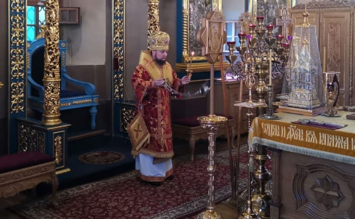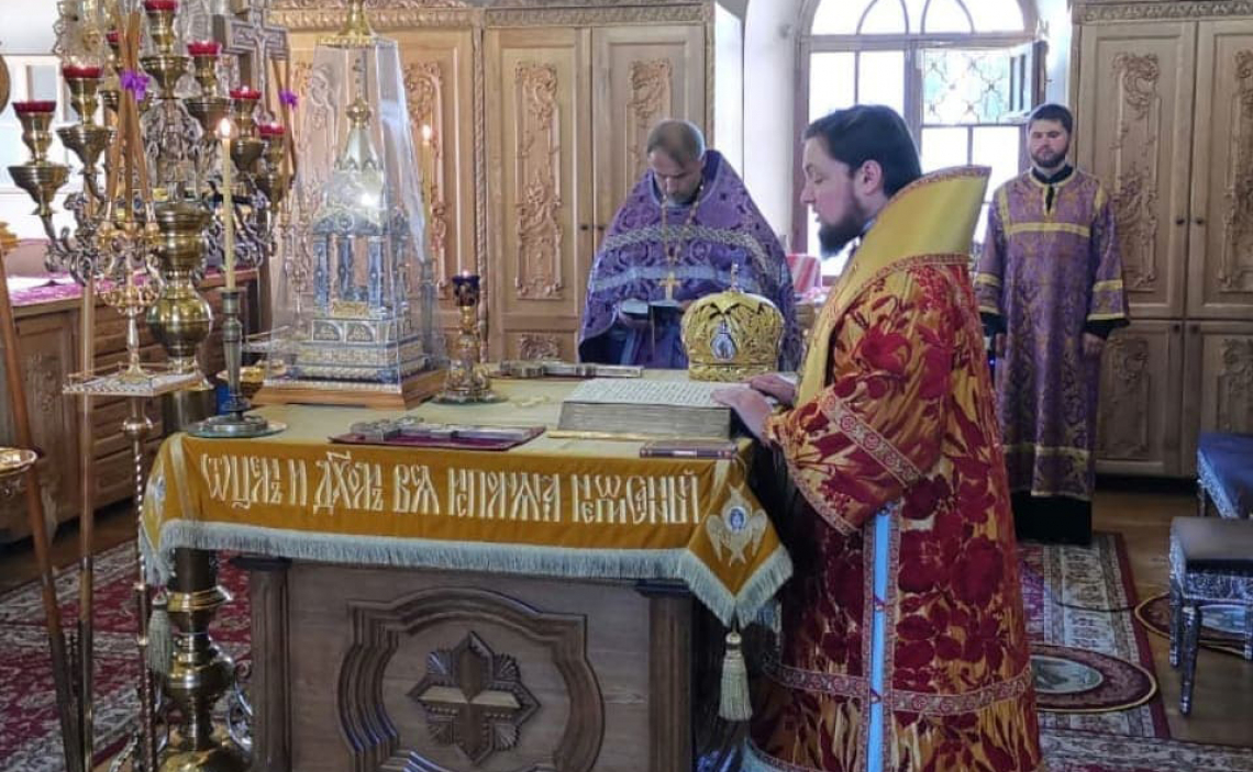 За Литургией по сугубой ектении Владыка вознес молитву «во время губительного поветрия и смертоносныя заразы», а также молитву о Святой Церкви.