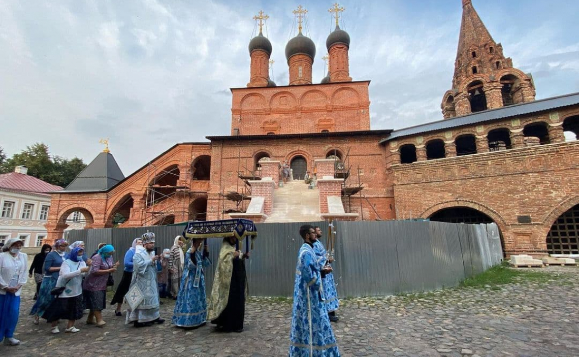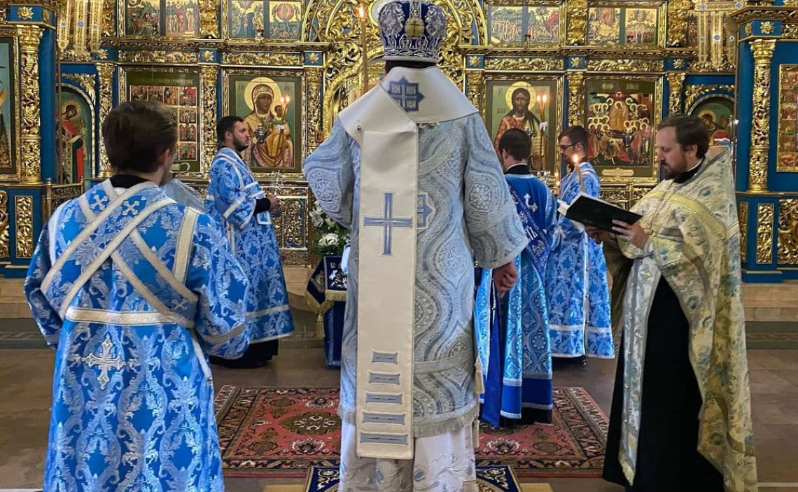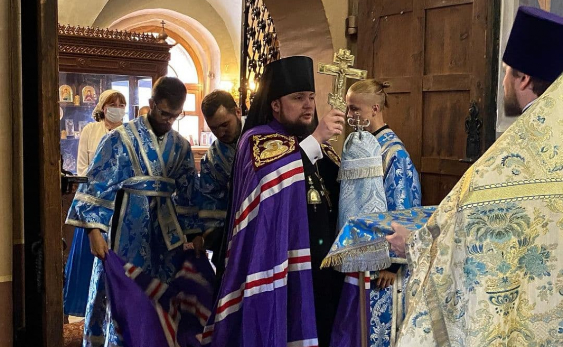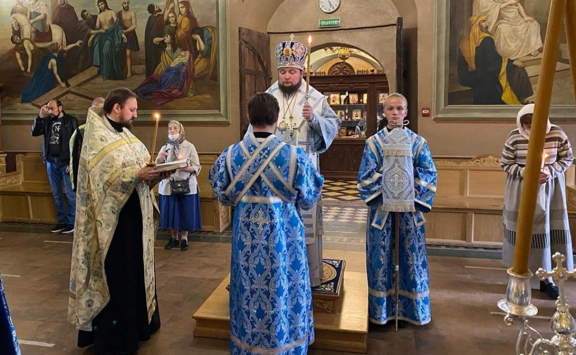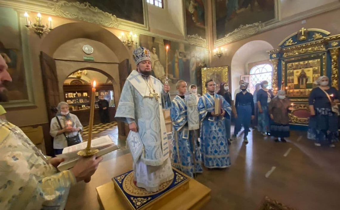 29 августа Епископ Истринский Серафим совершил утреню с чином погребения Плащаницы Пресвятой Богородицы в Свято-Успенском соборе Крутицкого подворья