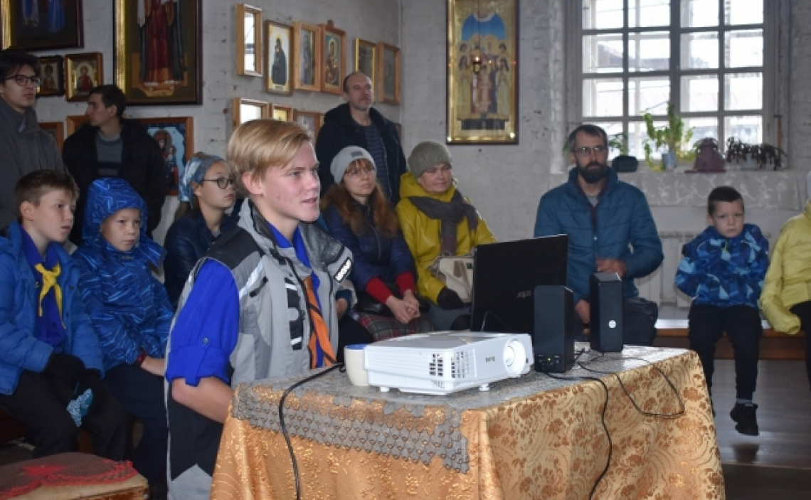 Православные следопыты приехали в составе четырех человек во главе с руководителем Совета БПС России Всеволодом Сергеевичем Кривцовым. Гости из Екатеринбурга показали презентацию о деятельности дружины во имя святого праведного воина Феодора Ушакова.