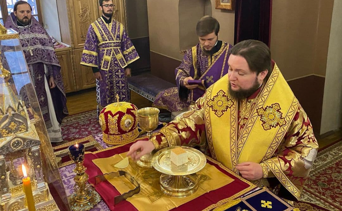 26 сентября, в Неделю 14-ю по Пятидесятнице, перед Воздвижением, Епископ Истринский Серафим совершил Божественную Литургию в Свято-Успенском соборе Крутицкого подворья