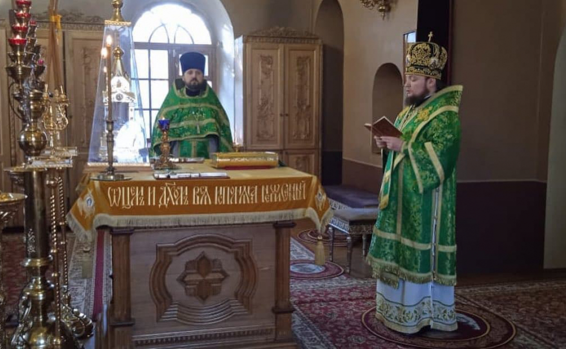 На Божественной Литургии по сугубой ектении Владыка вознес молитву «во время губительного поветрия и смертоносныя заразы», а также молитву о Святой Церкви.