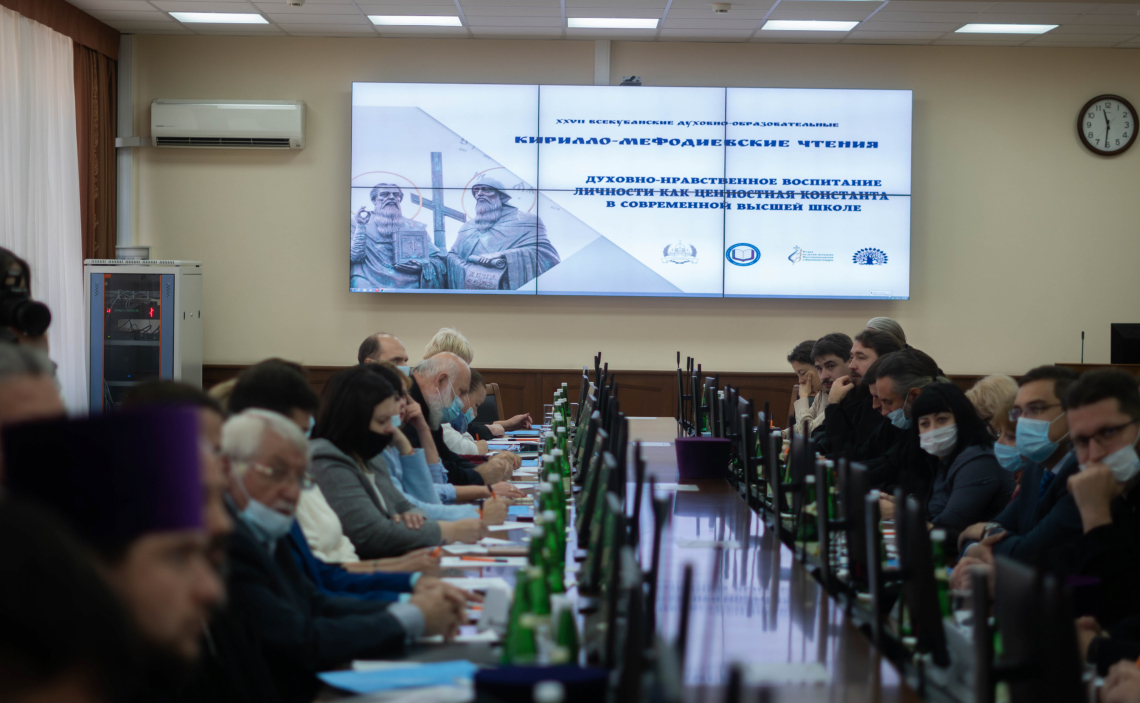 21 октября 2021 года в Кубанском государственном университете в рамках XXVII Всекубанских духовно-образовательных Кирилло-Мефодиевских чтений прошла секция «Духовно-нравственное воспитание личности как ценностная константа в современной высшей школе», организованная отделом по делам молодежи Екатеринодарской епархии. Работу секции возглавил митрополит Екатеринодарский и Кубанский Григорий.