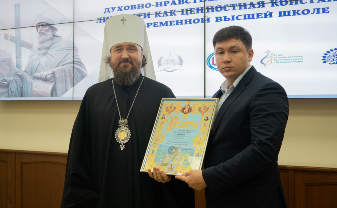 В завершении митрополит Екатеринодарский и Кубанский Григорий наградил Архиерейскими грамотами и благодарственными письмами за содействие в деле духовно-нравственного воспитания представителей высших и средних учебных заведений Краснодарского края.