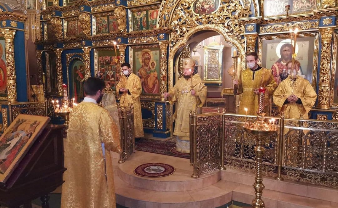 Его Преосвященству сослужило местное духовенство, песнопения исполнял мужской хор храма.