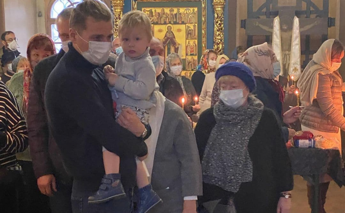 За богослужением молились прихожане храма, среди которых молодые семьи с детьми.