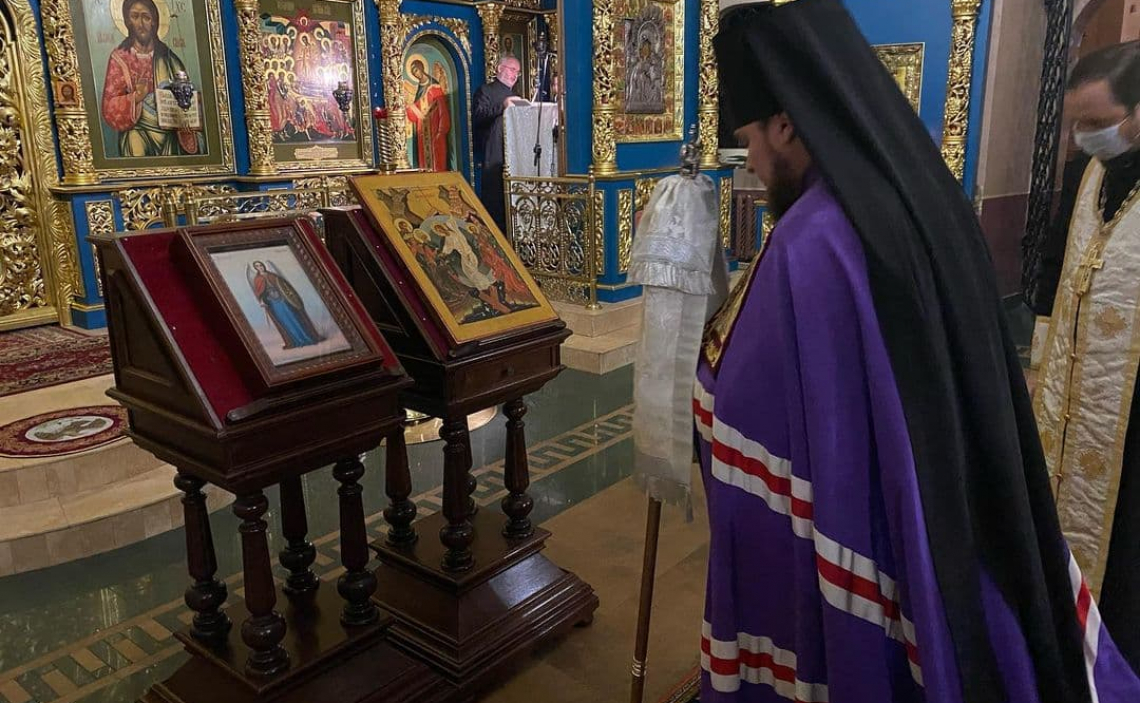 Его Преосвященству сослужило местное духовенство, песнопения исполнял мужской хор храма.