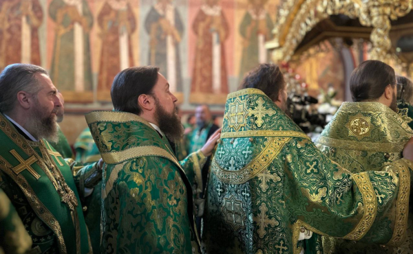 Епископ Истринский Серафим сослужил Святейшему Патриарху Кириллу за Божественной Литургией в Успенском соборе Троице-Сергиевой лавры