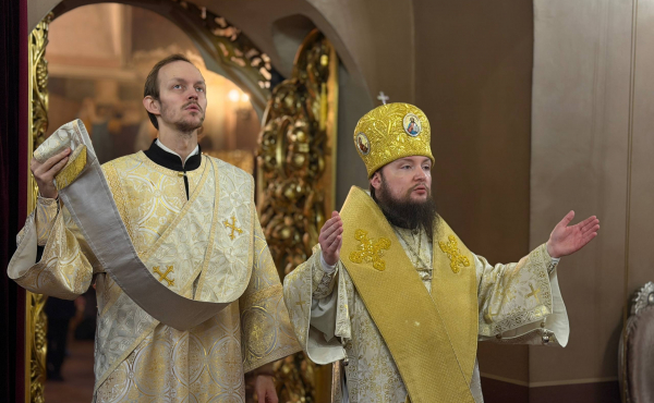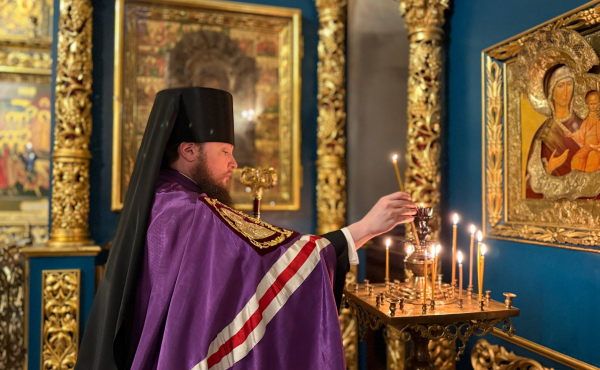В канун Недели 22-й по Пятидесятнице епископ Истринский Серафим совершил Всенощное бдение в Свято-Успенском соборе Крутицкого Патриаршего подворья