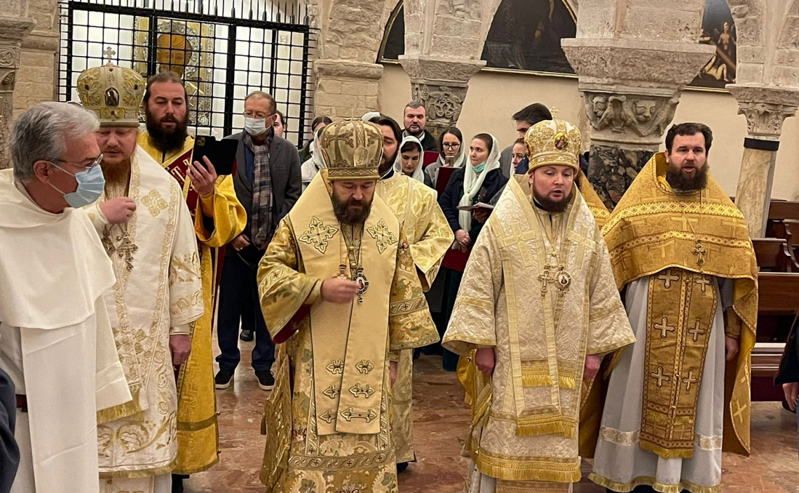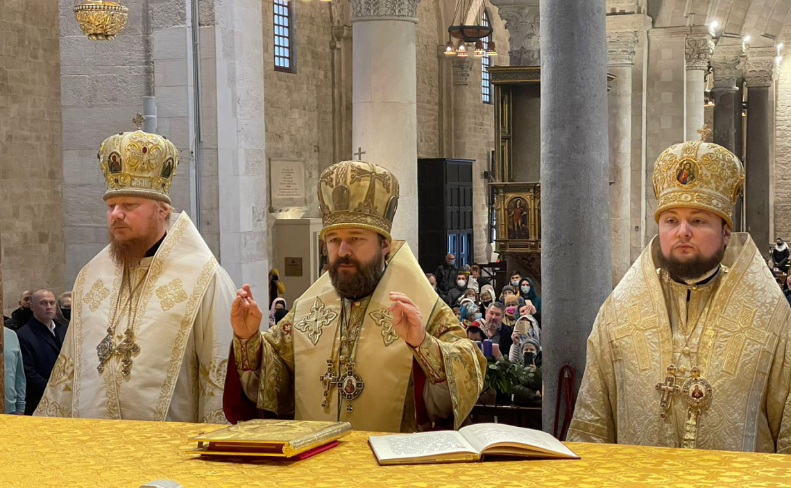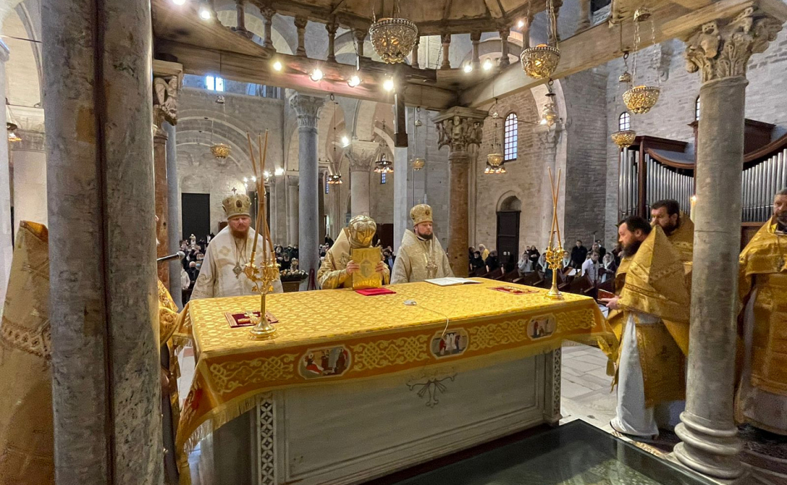 19 декабря 2021 года, в день памяти святителя Николая, архиепископа Мир Ликийских, Чудотворца, председатель Отдела внешних церковных связей Московского Патриархата митрополит Волоколамский Иларион, находящийся с рабочим визитом в итальянском городе Бари, возглавил служение Божественной литургии у мощей угодника Божия в посвященной ему базилике.
