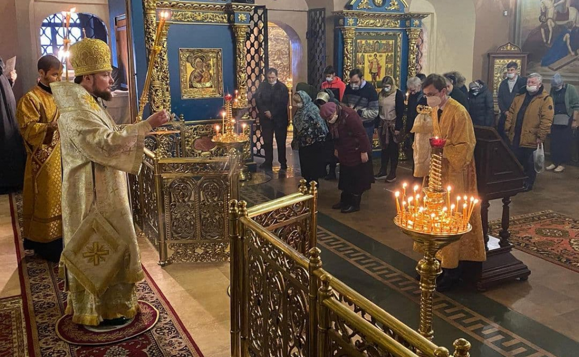 По сугубой ектении Владыка вознес молитву «во время губительного поветрия и смертоносныя заразы», а также молитву о Святой Церкви.