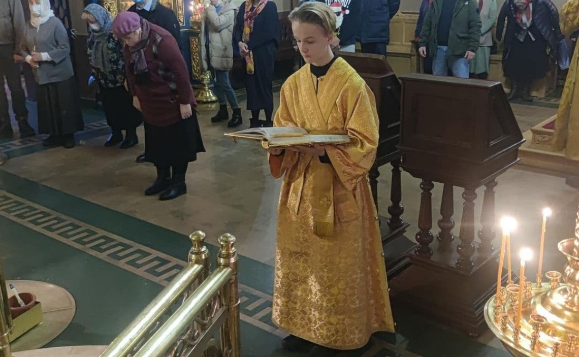 За богослужением молились прихожане храма, среди которых молодые семьи с детьми.